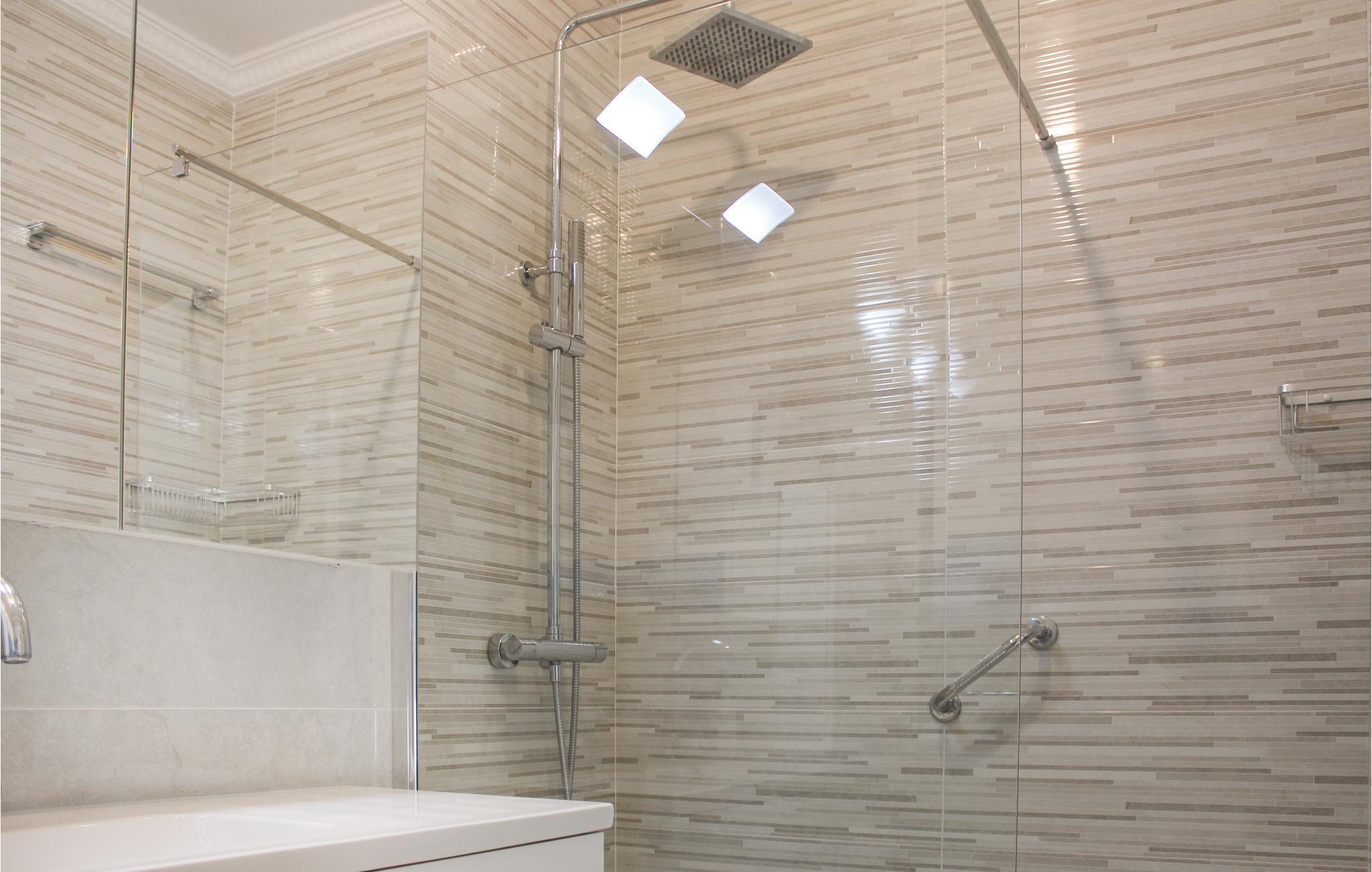 Badrum (nr. 2) - WC: Varmt och kallt vatten. Dusch