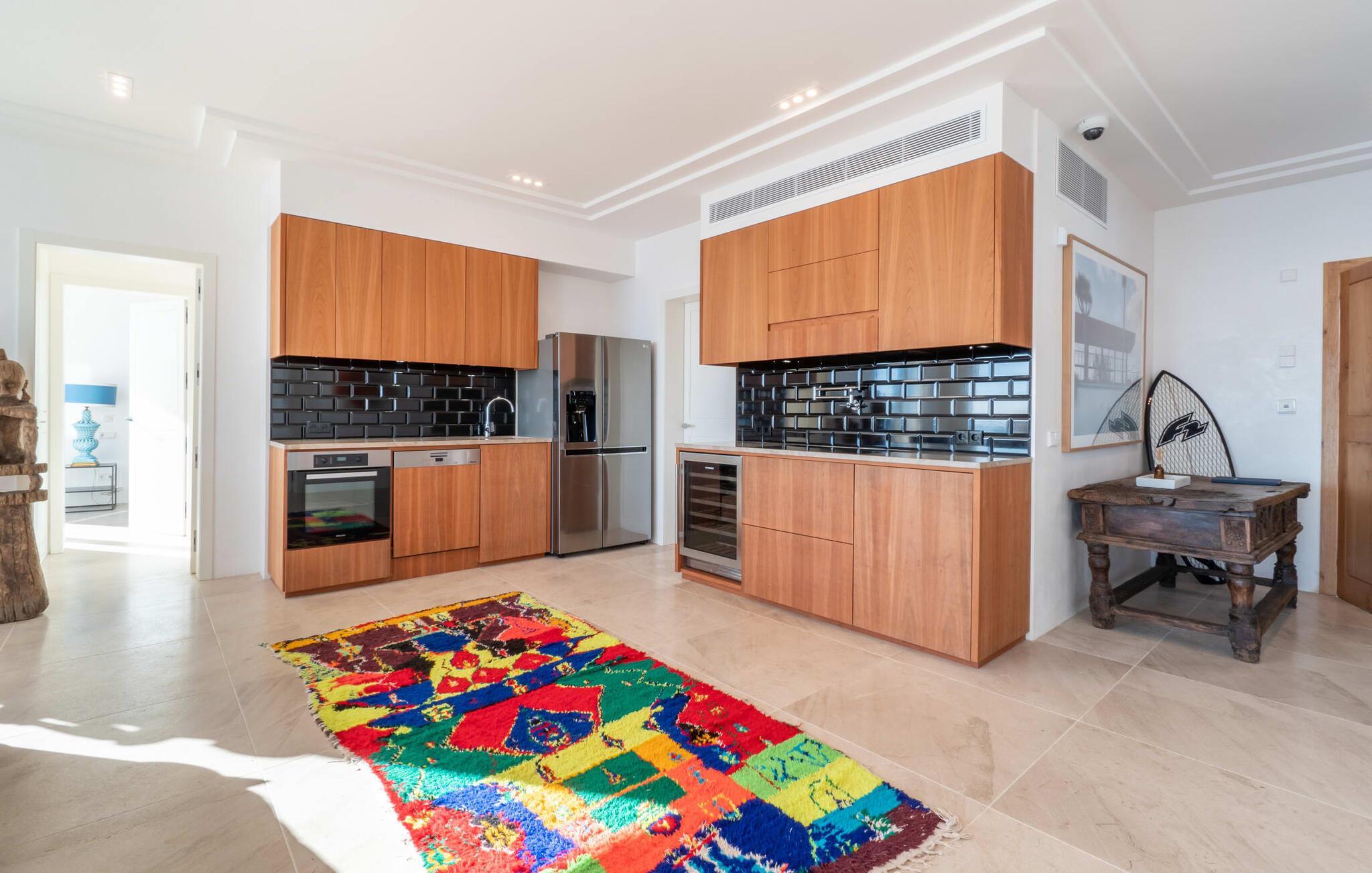 Även invändigt är den skinande vita villan ett riktigt drömhem, stilfullt och individuellt designat och möblerat. Fönstren från golv till tak i nästan alla rum ger utsikt över havet å ena sidan och släpper in ljuset å andra sidan, vilket gör det underbart ljust överallt. Möblerna och inredningen är alla av hög kvalitet och har satts samman med en god känsla för inredningsdesign. Naturfärger kombineras t.ex. skickligt med färgglada hemtillbehör och traditionell balinesisk stenkonst. På bottenvåningen finns ett stort rum med öppen planlösning mellan vardagsrum och matsal samt ett elegant kök. Till höger och vänster om detta ligger ett smakfullt designat sovrum med havsutsikt, alla med ett eget rymligt badrum med dusch från golv till tak och eleganta marmordetaljer. Ytterligare två, lika vackra sovrum och badrum med tillgång till takterrassen ligger på övervåningen. Från Villa Tortuga kan ni njuta av en direkt utsikt över Medelhavet: huset med sina stora fönsterfronter ligger i söderläge på en trädgårdstomt med en infinitypool precis vid vattnet. Du kan enkelt göra din shopping i Porto Cristo, som ligger bara cirka 4,5 km bort, via vägen, som hörs beroende på vindriktningen. Cala Anguila-bukten ligger bara ca 1,6 km bort.