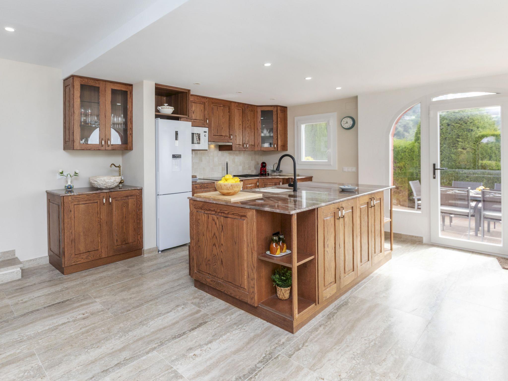 "Lynn", 4-room house 94 m2. Beautiful and modern furnishings: living/dining room with open-hearth fireplace (only for decoration), dining table, digital TV and forced-air heating. Exit to the garden, to the terrace. 1 double bedroom with 1 french bed (160 cm, length 190 cm), bath/WC, air conditioning and forced-air heating. Exit to the terrace. 1 room with 2 beds (90 cm, length 190 cm), air conditioning and forced-air heating. Exit to the terrace. 1 double bedroom with 1 french bed (160 cm, length 190 cm), shower/WC, air conditioning and forced-air heating. Exit to the terrace. Open kitchen (oven, dishwasher, 4 ceramic glass hob hotplates, toaster, kettle, microwave, freezer, electric coffee machine). Bath/WC or shower/WC. Solar power. Large terrace. Terrace furniture, covered balcony, sitting area. Beautiful view of the swimming pool. Facilities: washing machine, dryer, iron, mosquito net, baby cot for up to 2 year olds, hair dryer. Internet (WiFi, free). Garage. Please note: suitable for families. Non-smoking house. HUTG-020135 // Reg. Nr.: ESFCTU00001702100041827500000000000000000HUTG-0201358