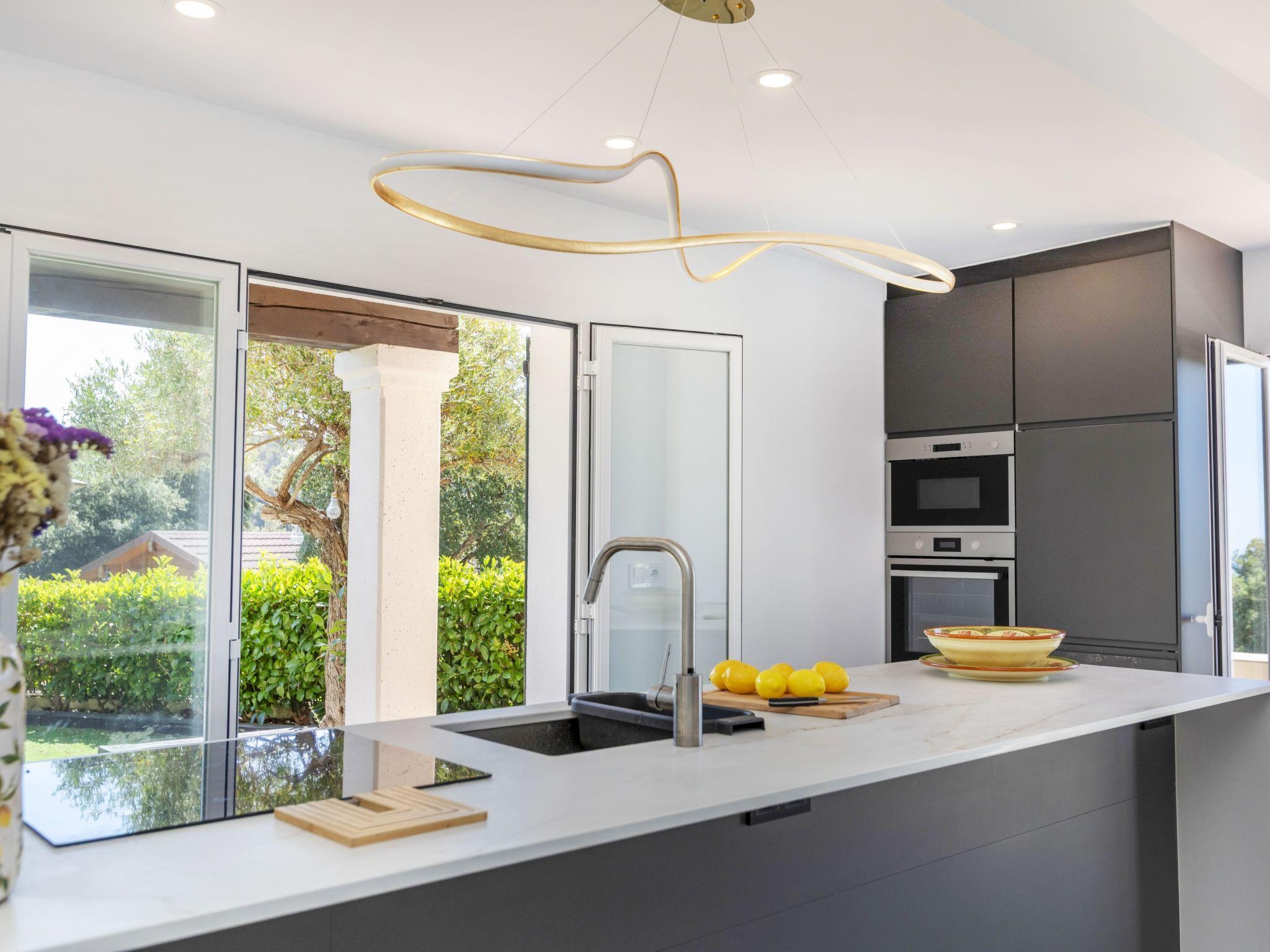 "Lola", 4-room terraced house 90 m2 on 2 levels. Spacious and bright, very comfortable and stylish furnishings: living/dining room with dining table, digital TV and air conditioning. Exit to the patio. Open kitchen (oven, dishwasher, 3 induction hot plates, toaster, kettle, microwave, freezer, electric coffee machine). Exit to the patio. Sep. WC. No heating option. Upper floor: 1 room with 1 double bed (150 cm, length 190 cm), bath/bidet/WC. Exit to the balcony. 1 room with 1 french bed (150 cm, length 190 cm). Bath/bidet/WC. Terrace furniture, barbecue, deck chairs. Distant view of the sea and the countryside. Facilities: washing machine, iron, children's high chair, baby cot for up to 2 year olds, hair dryer. Internet (WiFi, free). Suitable for families. HUTG-014616 // Reg. Nr.: ESFCTU00001702100049725600000000000000000HUTG-0146167