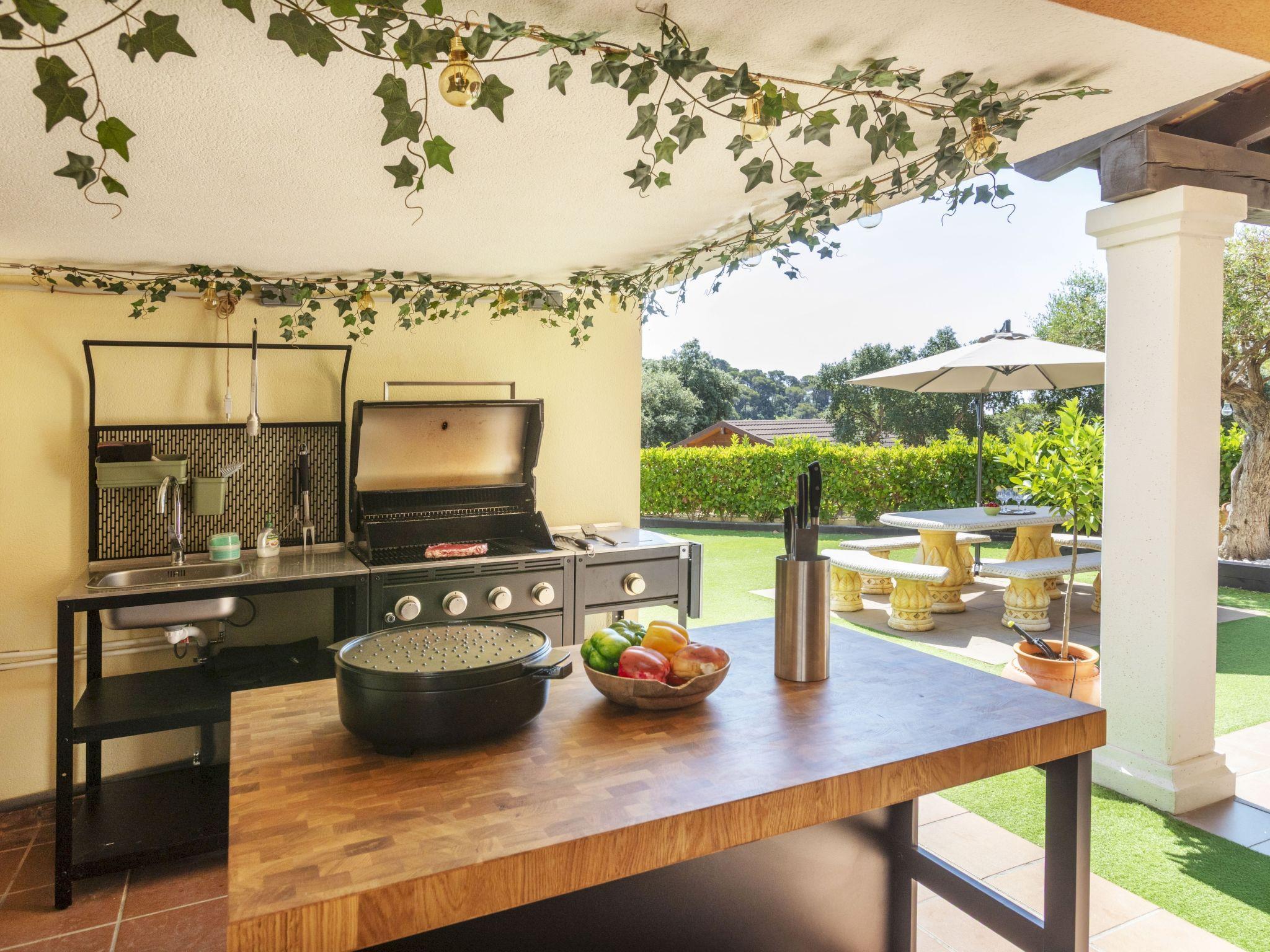Cala Llevadó 4 km from center Tossa de Mar: Modern, cosy terraced house "Lola", 2 storeys. 20 houses in the resort. In a quiet position, traffic calmed area, 1.5 km from the sea, 1.5 km from the beach. For shared use: terraced garden, swimming pool (seasonal availability: 01.Apr. - 30.Oct.). Outdoor shower, basketball, children's playground (slide, swing). Private: beautiful garden to relax, parking space n 42. Shop 3 km, supermarket 2.5 km, restaurant 1.5 km, bus stop 500 m, railway station "Blanes" 16 km, sandy beach "Cala Llevadó" 1.5 km. Nearby attractions: Tossa de Mar Castle 4 km, Waterworld 10 km, Marineland 18 km, Jardin Botanico Pinya de Rosa 11 km, Jardin Botanico Marimurtra 12 km. Please note: car recommended. Suitable for families. The owner does not accept any youth groups. Additional accommodations can be booked. Property ref. es9465.352.1 is situated on the same property. Neighbourhood highly sensitive to noise. Quietness and good behaviour expected.