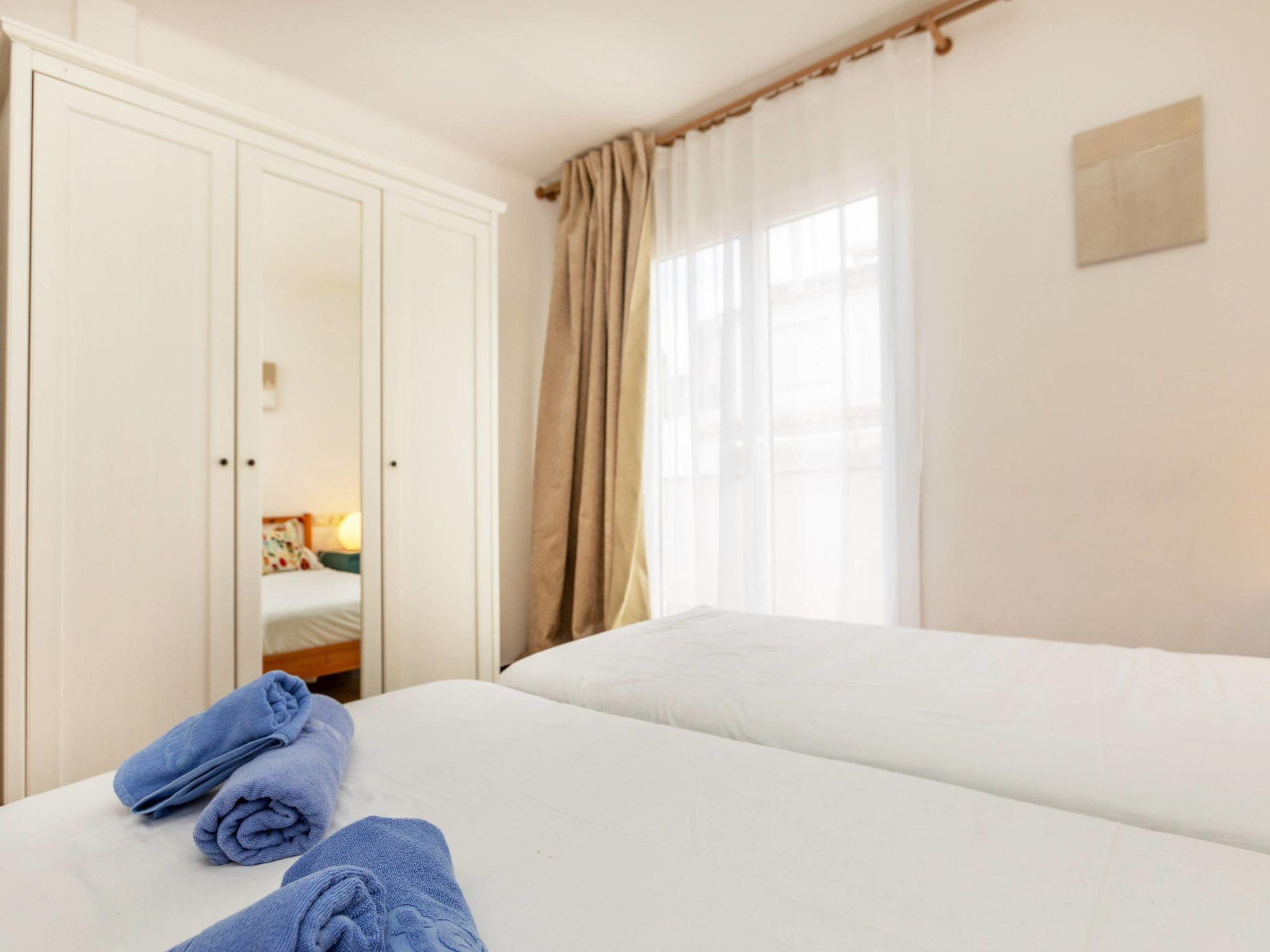"Garbinada", 3-room apartment 45 m2 on 3rd floor. Spacious and bright, practical and cosy furnishings: open living/dining room 15 m2 with dining table, kitchen corner, digital TV, air conditioning and forced-air heating. Exit to the terrace, north facing position and east facing position. 1 double bedroom, north-east facing position, window onto the courtyard with 1 french bed (140 cm, length 190 cm). 1 double bedroom, window onto the courtyard with 2 beds (90 cm, length 190 cm). Exit to the terrace, north facing position and east facing position. Open kitchen (oven, 3 ceramic glass hob hotplates, toaster, kettle, microwave, freezer, electric coffee machine). Shower/WC. Small balcony 7 m2, north-east facing position. Balcony furniture, sitting area. Beautiful view of the mountains, the resort and the town. Facilities: washing machine, iron, hair dryer. Internet (WiFi, free). Please note: suitable for families apartment street side. 1 pet/ dog allowed. TV only ES. No lift. HUTG-014629-87
