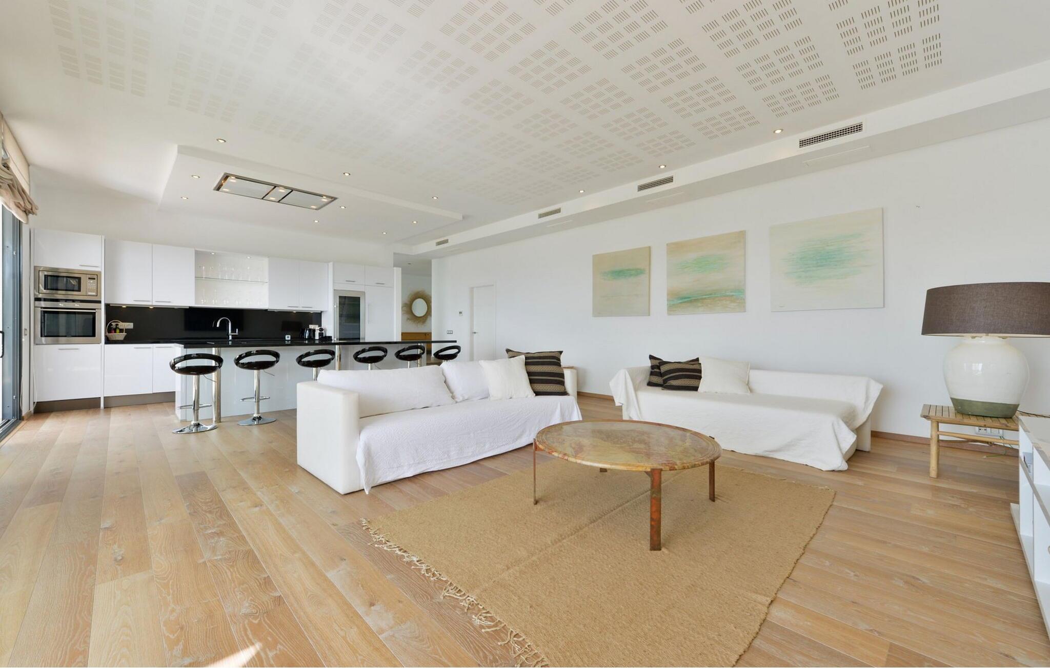 Denna vackra villa ligger i ett av de bästa områdena på Ibiza och erbjuder ett utmärkt läge nära Ibiza stad, Talamanca-stranden och byn Jesus. Gästerna kan njuta av hisnande utsikt över havet och den berömda Dalt Vila, som skapar en pittoresk bakgrund.