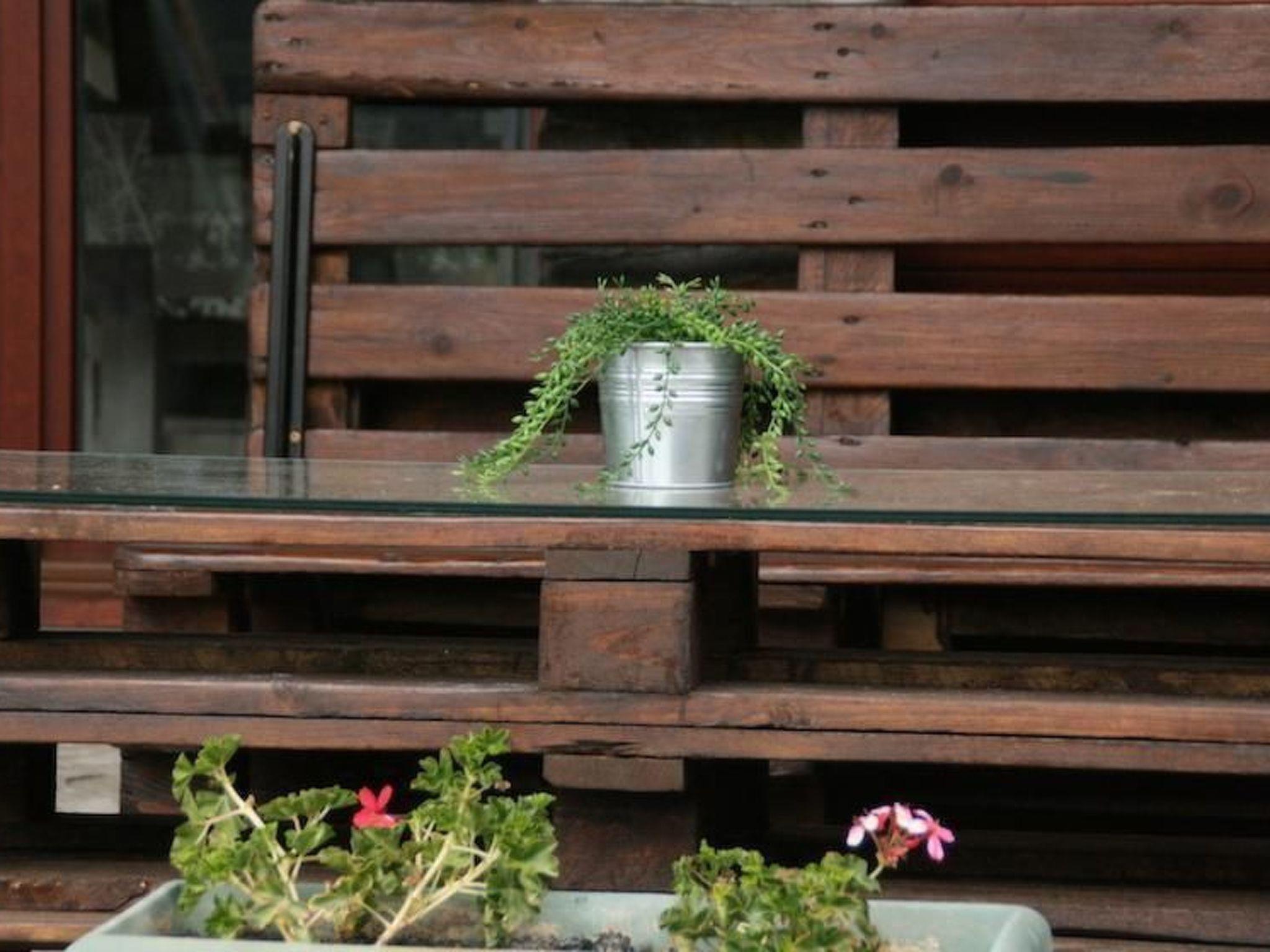 From the ground floor, there is access to the terrace with high quality outdoor furniture. The view of the surrounding mountains is spectacular. You can park your car under the porch of the property, which is fenced. There is also a small garden with lawn.