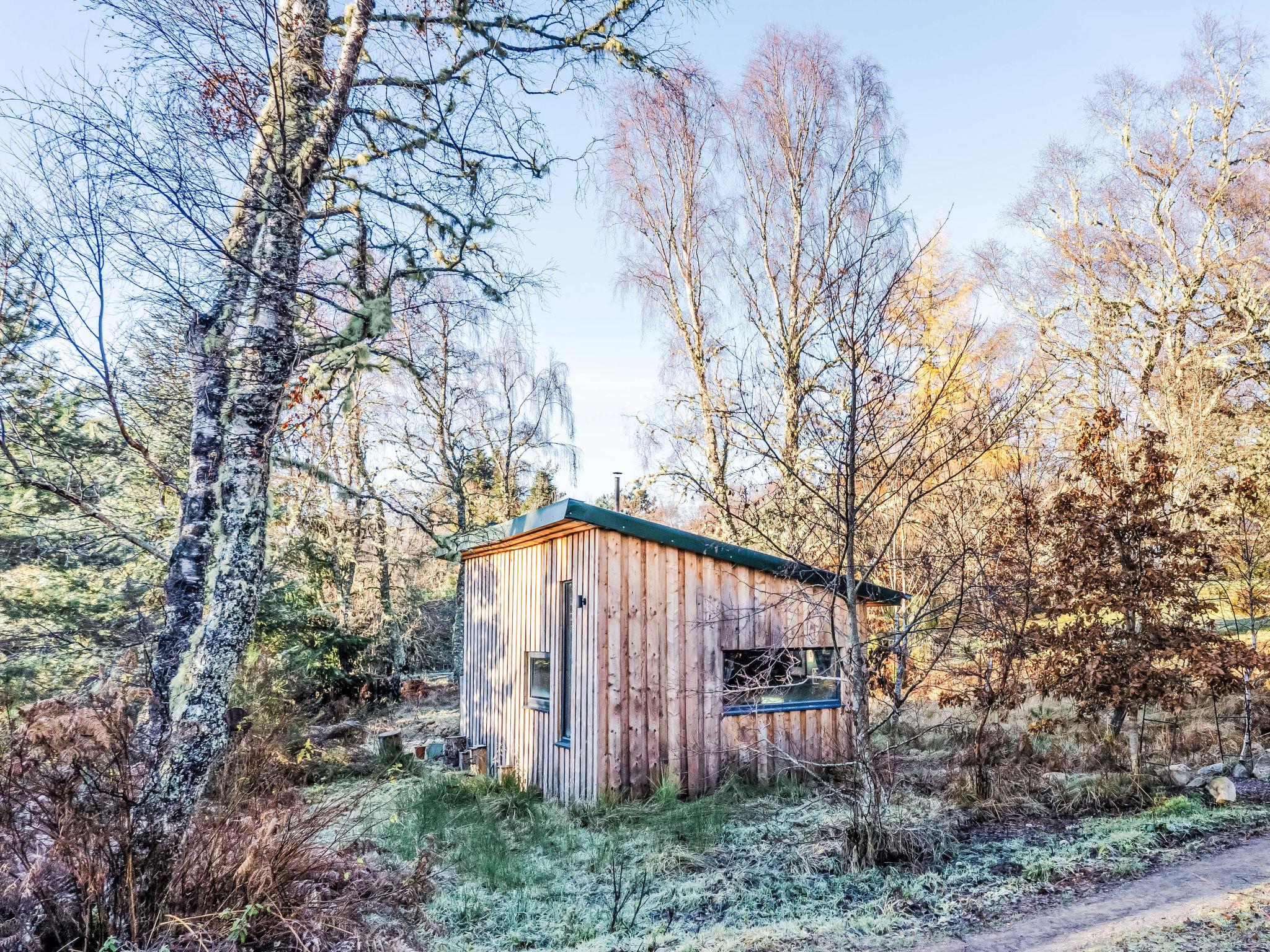 Errogie 4 km from Loch Ness: Modern, cosy house "G-Wilderness Cabin", detached, built in 2024. In a secluded, quiet position, 5 km from the lake, 18 km from the beach. Private: terraced garden. Terrace, garden furniture, barbecue, fireplace, parking at the house. Shop 18 km, supermarket 18 km, shopping centre 18 km, restaurant 15 km, bus stop 500 m, railway station "Inverness" 16 km, sandy beach "Nairn" 40 km. Golf course (18 hole) 10 km. Nearby attractions: Inverness Castle & Museum 18 km, Culloden Battlefield 17 km, Inverness Leisure 18 km, Falls of Foyers 10 km, Dores 26 km. Well-known lakes can easily be reached: Loch Ness 5 km. Hiking paths: Great Glen Way. Object suitable for 2 adults + 1 child.