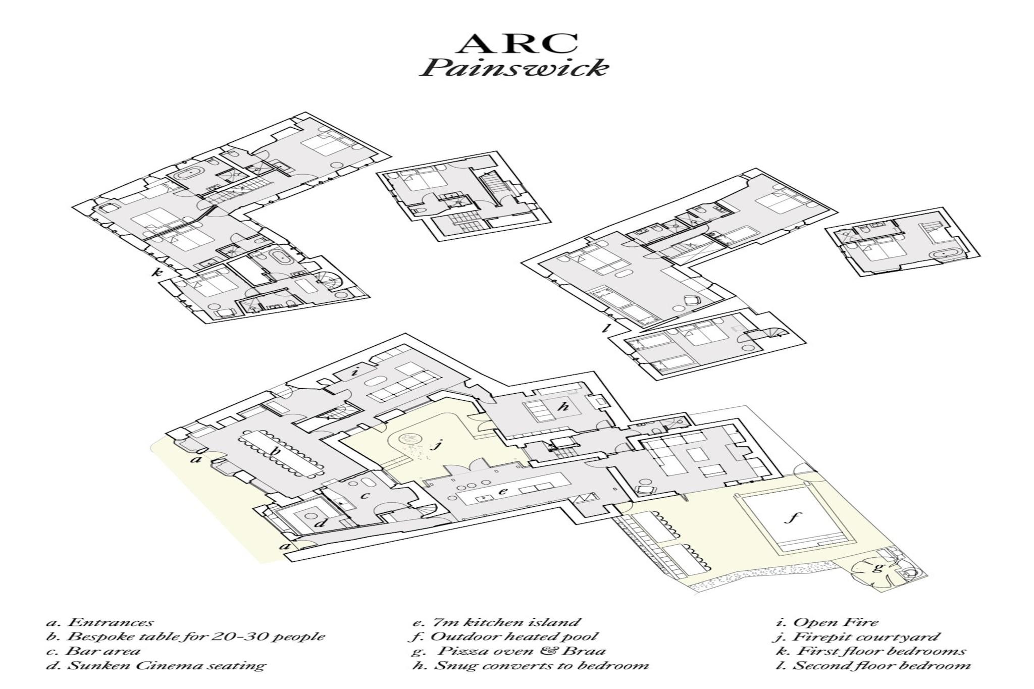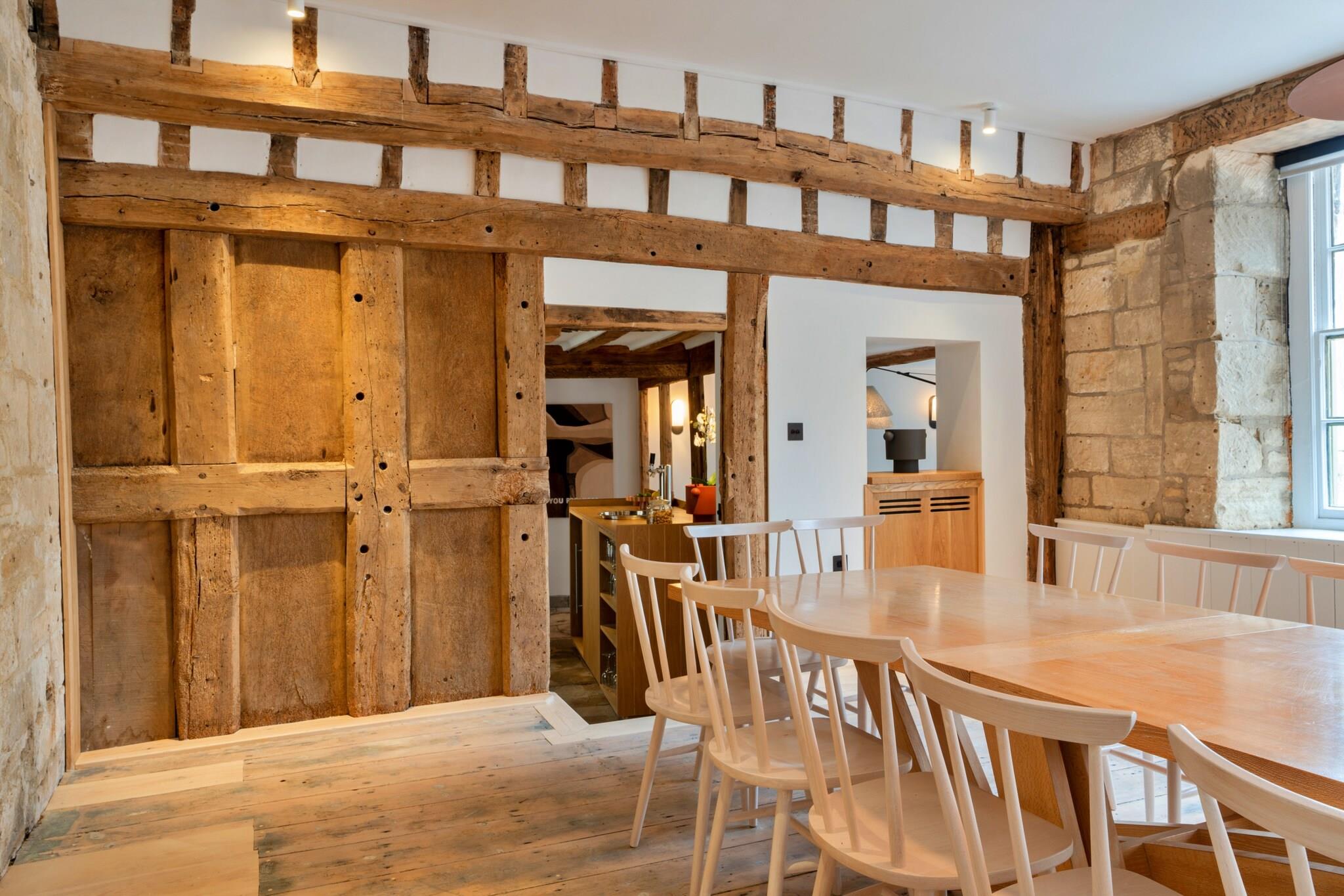 Denna lyxiga kulturminnesmärkta fastighet ligger i hjärtat av den pittoreska Cotswold-byn Painswick, mittemot den berömda St. Mary's Churchyard, känd för sina ikoniska 99 idegranar. Efter att ha genomgått en omfattande renovering av Parti Architects erbjuder huset en perfekt blandning av historisk charm och modern lyx, vilket gör det till ett idealiskt val för stora grupper och familjesammankomster. Fastigheten kan ta emot upp till 24 gäster fördelade på nio sovrum, med flexibla sängkonfigurationer, vilket gör att dubbelsängar kan delas upp till singlar på begäran. Huset är designat runt en central innergård och erbjuder en mängd olika gemensamma utrymmen för att koppla av och umgås. Utomhusområdena har en inbjudande pool, grillplats och en pizzaugn/braai, vilket gör den idealisk för att njuta av långa sommarkvällar. Inomhus är fastigheten lika imponerande. Bottenvåningen innehåller en rymlig matsal med plats för upp till 26, ett projektorrum, en bar och två separata vardagsrum, vilket ger gott om plats för avkoppling. Köket är utrustat med toppmoderna Miele-apparater, inklusive fyra ugnar, två kokplattor och ett vinkylskåp, vilket gör det idealiskt för att laga stora familjemåltider. Fastigheten är husdjursvänlig, med upp till två hundar tillåtna mot en extra avgift. Gästerna kan njuta av en rad ytterligare tjänster, inklusive en privat bartender, intern yoga eller en personlig fotograf för att fånga upplevelsen. Painswick i sig är omgivet av vacker natur och ligger i mitten av Cotswold Way National Trail, som erbjuder många möjligheter till utomhusaktiviteter. Byn är känd för sina charmiga Cotswold-stenbyggnader, pittoreska butiker och traditionella pubar, vilket säkerställer att gästerna har allt de behöver för en bekväm och trevlig vistelse.