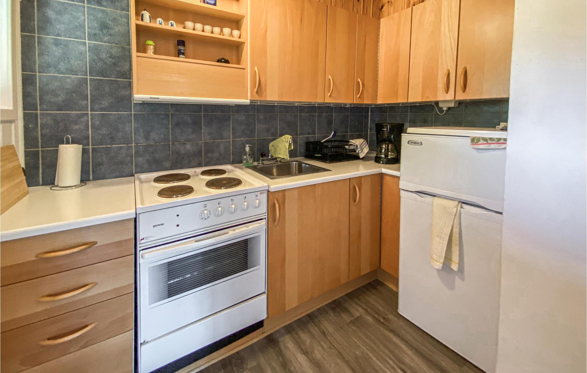 Vad kan vara bättre än att tillbringa semestern i ett lugnt hus vid sjön? Förmodligen inte mycket, vilket är anledningen till att du bör flytta in i detta praktiskt möblerade hus tillsammans med din familj eller vänner och komma till vila. I vardagsrummet, köket eller på den stora terrassen kan du känna dig som hemma och tillbringa din tid med att leka, koppla av och laga mat. Om årstiden tillåter kan du äta dina måltider på terrassen och blicka ut över sjön.