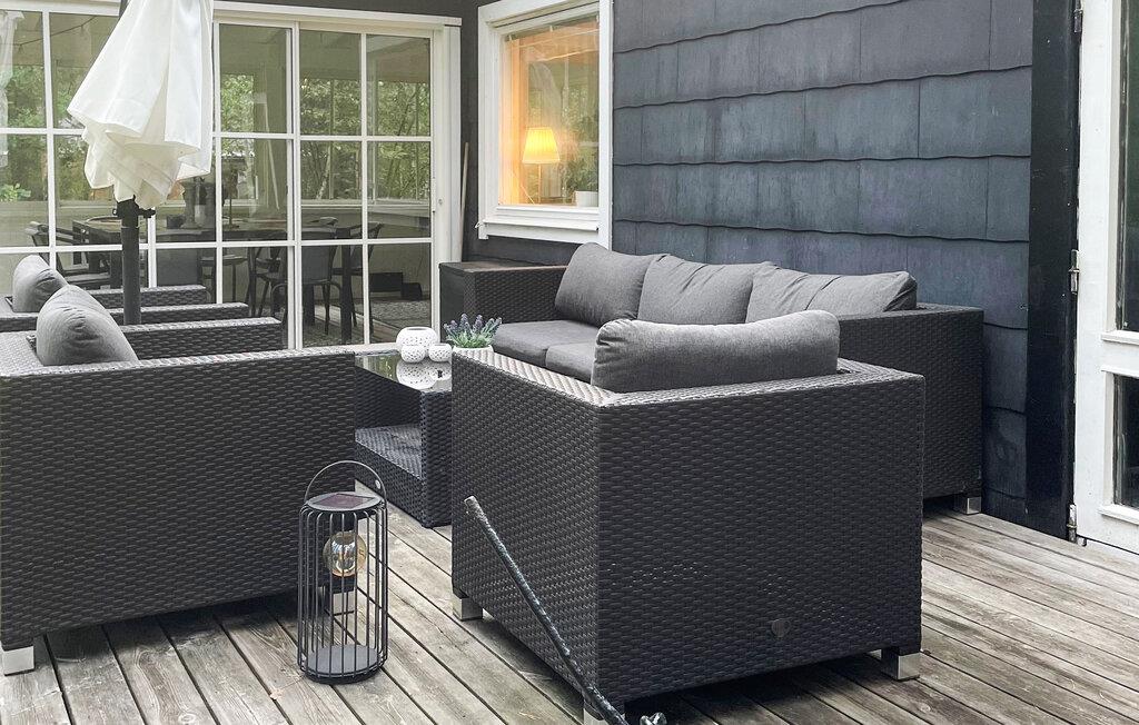 Njut av utsikten över det vackra landskapet från terrassen. Bekväma trädgårdsmöbler inbjuder dig att njuta av en kopp kaffe på morgonen eller koppla av på kvällen.