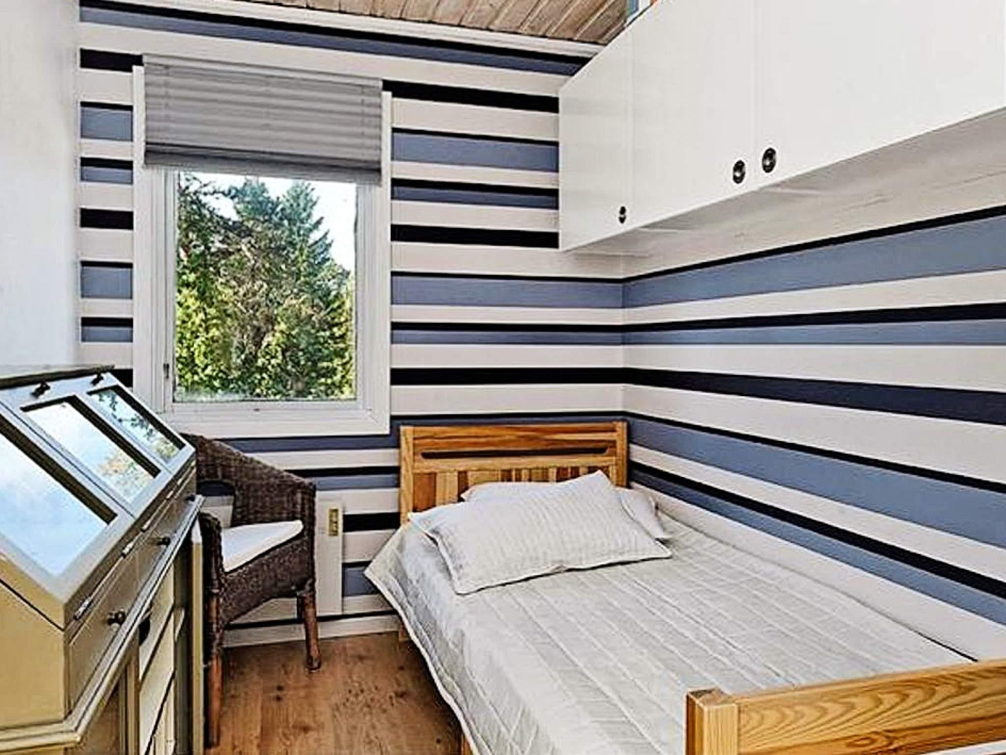 Inredningen är ljus och fin med öppen planlösning mellan kök och vardagsrum. Här finns en braskamin som kan tändas för mysiga stunder tillsammans en kylig kväll. Två sovrum varav det ena med dubbelsäng är rymligt. Det andra sovrummet har en våningssäng. Badrum med dusch och wc. Vid sidan av stugan finns gäststuga med våningssäng som kan vara lämplig för äldre baran som vill ha en egentid under semestern. Stugan ligger på fin kuperad naturtomt med träd in på knuten. En underbar altan för de minnesvärda sommarkvällarna, god mat, nära gemenskap och lättlagade grillmiddagar det är vad man önskar för en behaglig avkopplande semester.