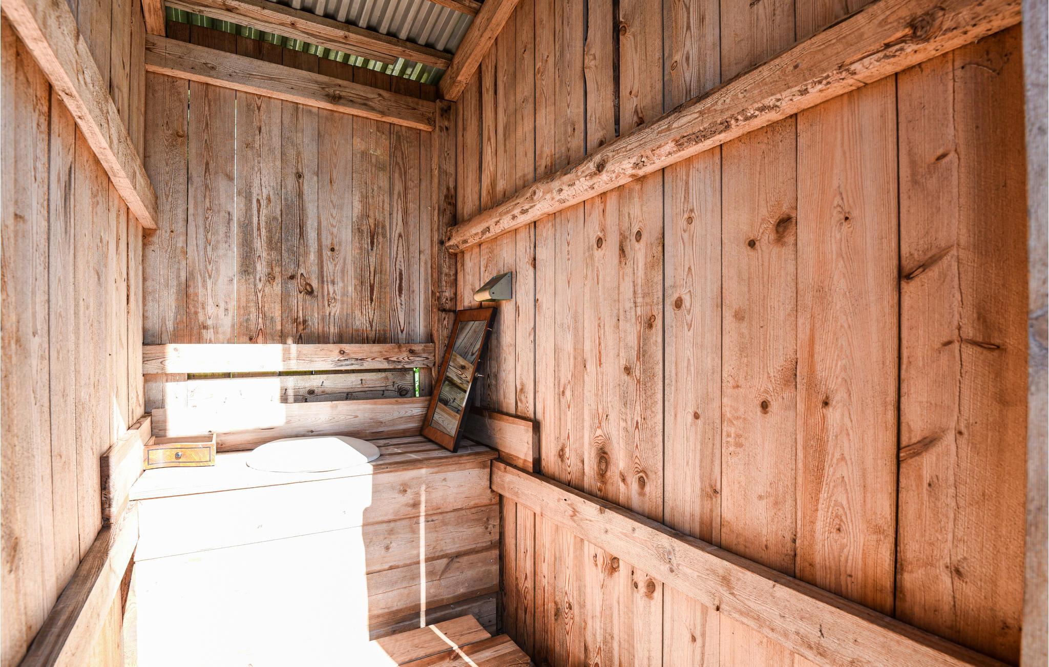 Vänligen notera: Duschen finns på utsidan.