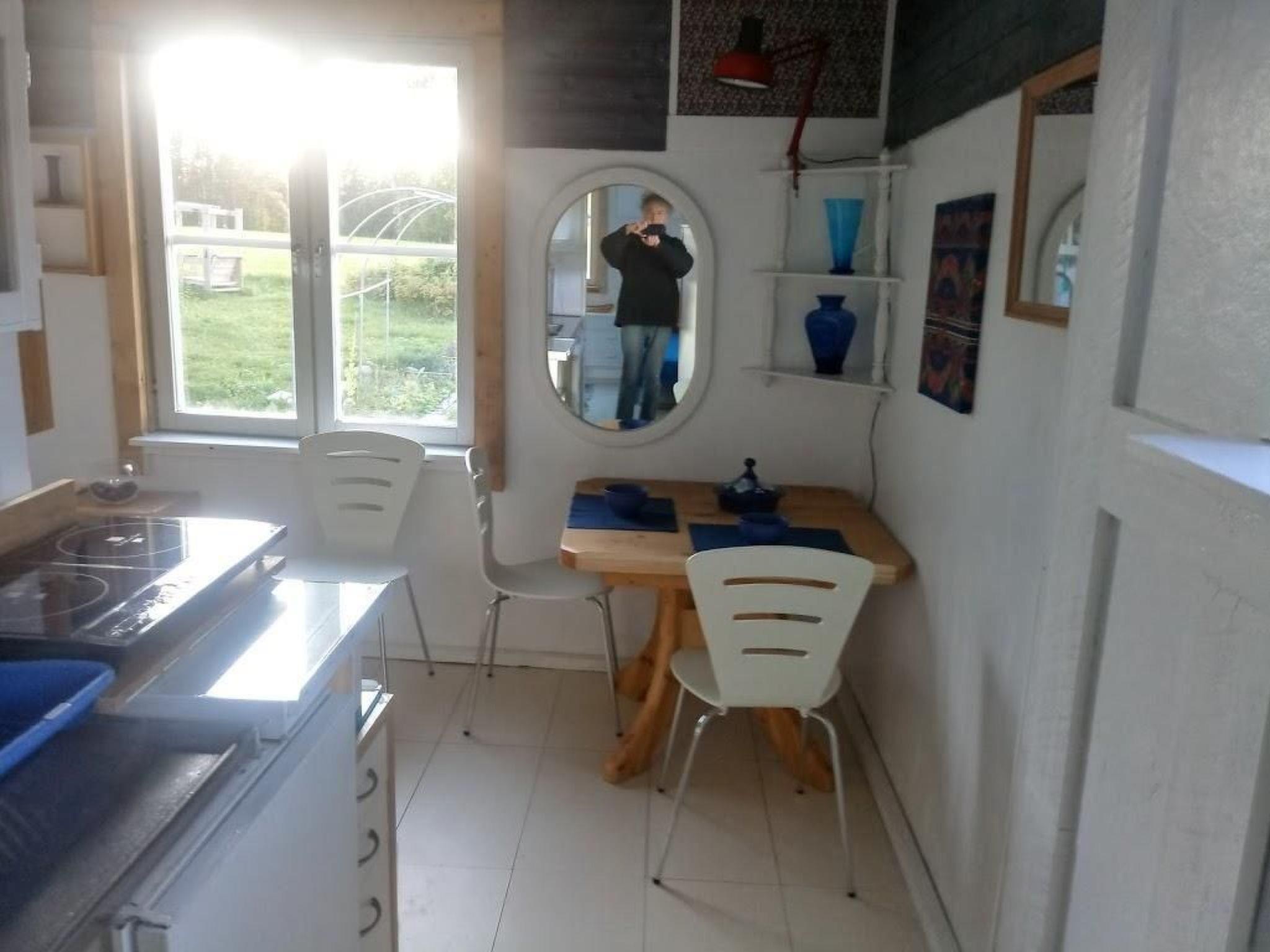 Inside, the cottage offers everything needed for a comfortable stay, including a well-equipped kitchenette with dining area where guests can prepare meals, and a sleeping area that accommodates up to three people. The accommodation also has a bathroom equipped with a shower, adding to the comfort. Adding to the convenience is access to a shared washing machine, which is particularly useful for longer stays.