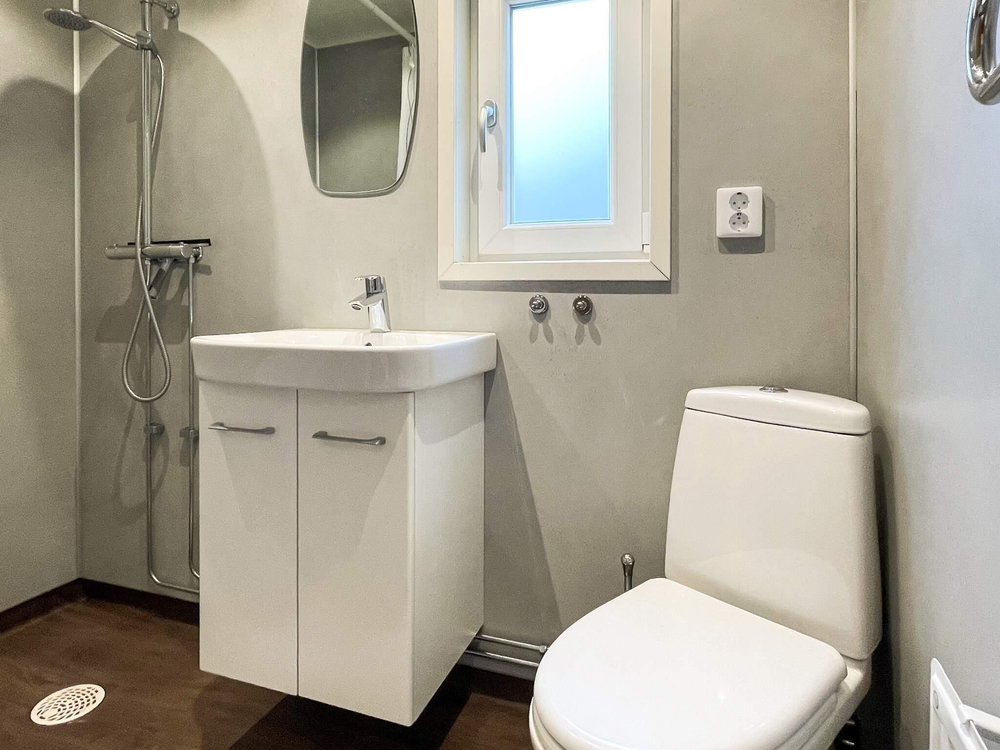 I båda husen finns fräscha badrum med wc, handfat och dusch. Notera att huset hyrs ut till max 6 personer. Men det går även att bädda upp soffan i vardagsrummet till en dubbel bädd på 180cm om man hellre vill sova där.