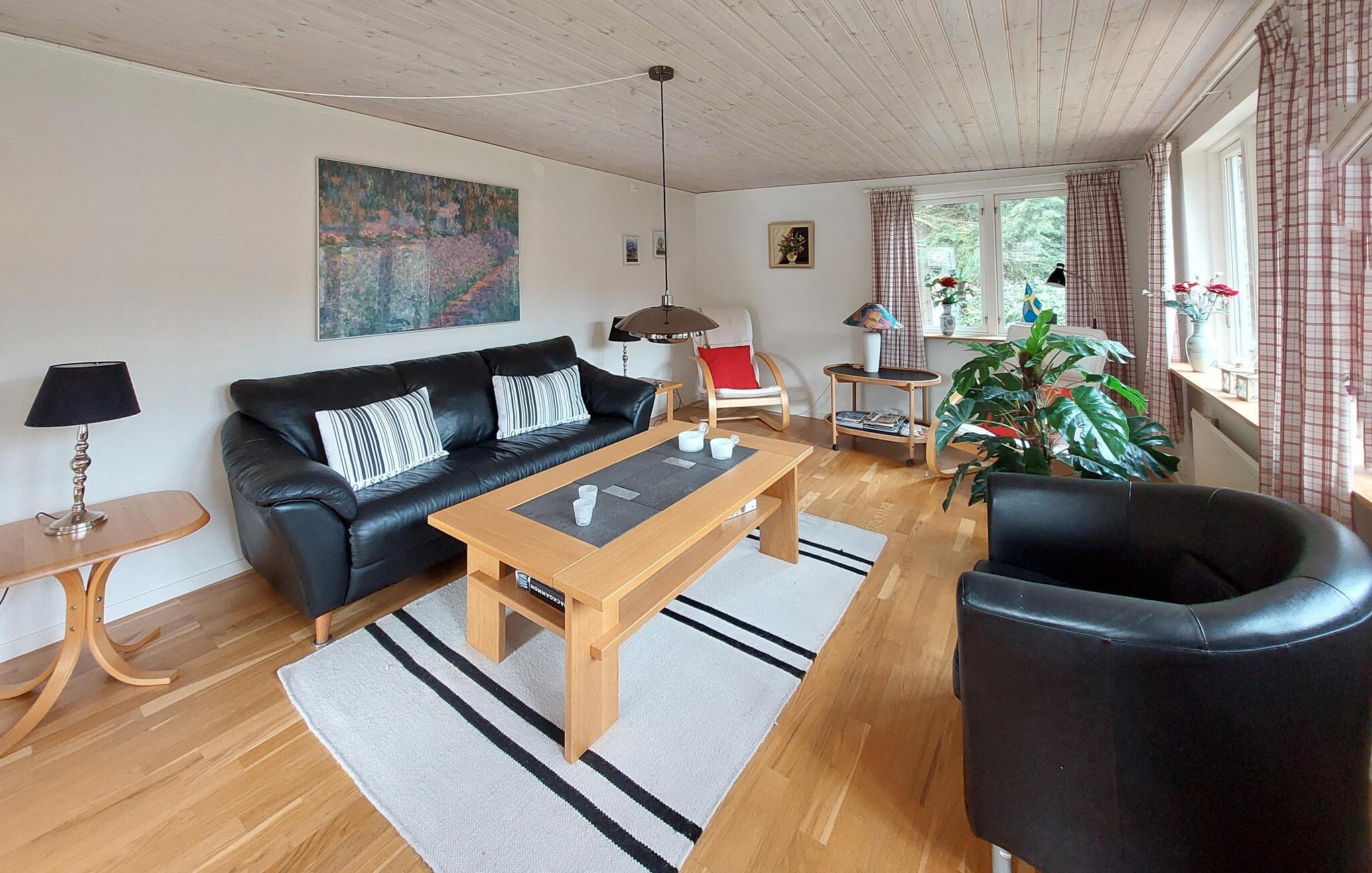 Se fram emot detta underbara semesterhus med en stor terrass i ett mycket lugnt läge. Omgivet av skog och vackra promenadvägar för vandringar i skog och ängar, erbjuder det dig en bekymmersfri och fridfull semester i Sverige. Det rymliga semesterhuset är idealiskt för en större grupp resenärer. Flera soffor och sittgrupper inbjuder till att dröja sig kvar och njuta av livliga samtal över en god kopp kaffe. I det vackra köket finns gott om plats för att tillaga dagens måltider.