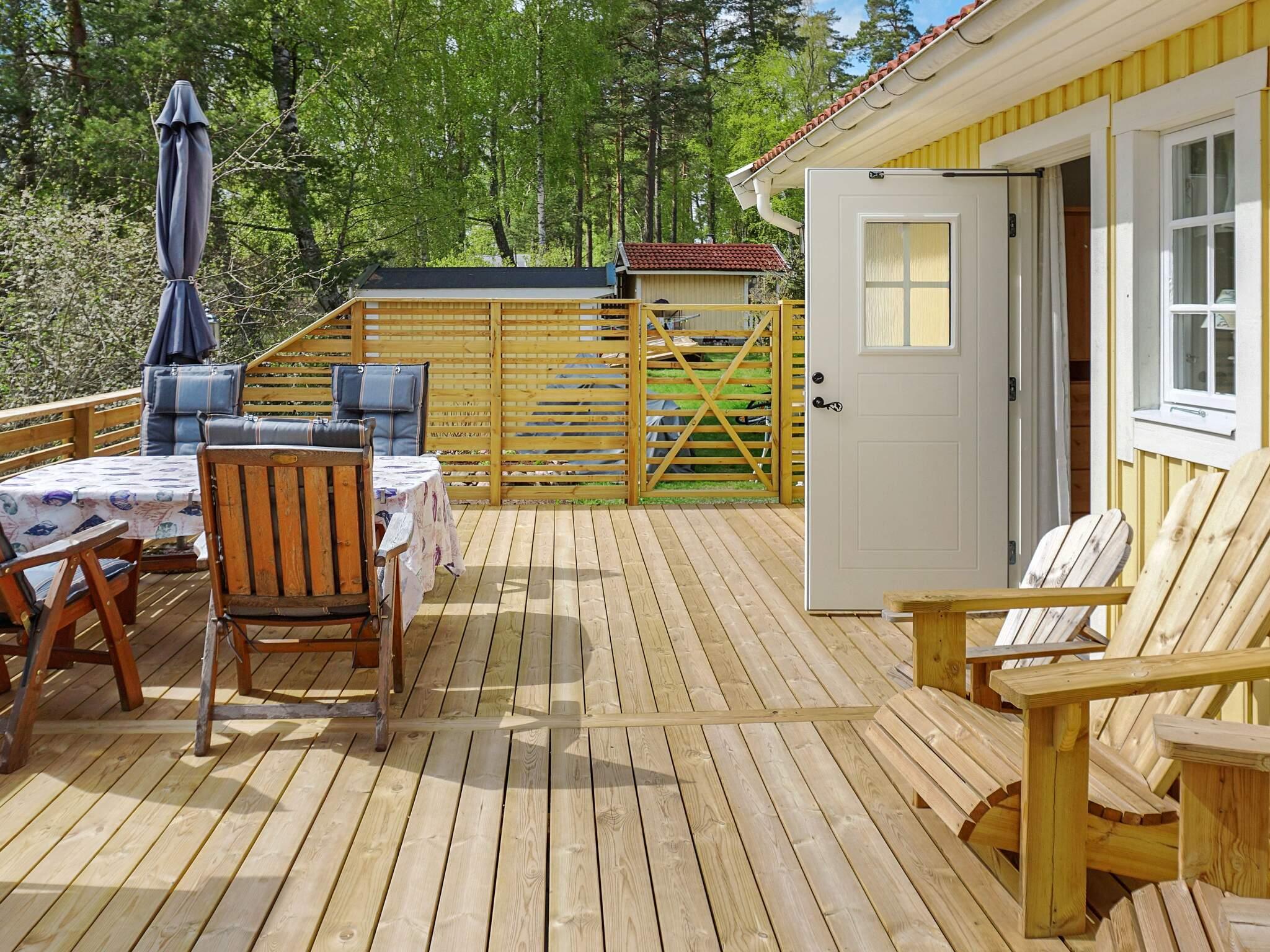 Med en glimt av Mälaren välkomnas ni här av denna fina stuga med stor altan och parkering bekvämt belägen intill stugan. På den stora altanen i perfekt söderläge, kan ni njuta av morgonkaffet och trevliga middagar i bekväma utemöbler och solstolar. Här finns även en praktisk arbetsbänk med vatten om man vill stå ute och förbereda maten! Via altanen når ni entrén in till stugan där ni kommer in i allrummet som är förenat med kök. Från allrummet når ni två fina sovrum med dubbelsäng respektive våningssäng. Modernt och fräscht badrum med dusch som även nås via allrum.