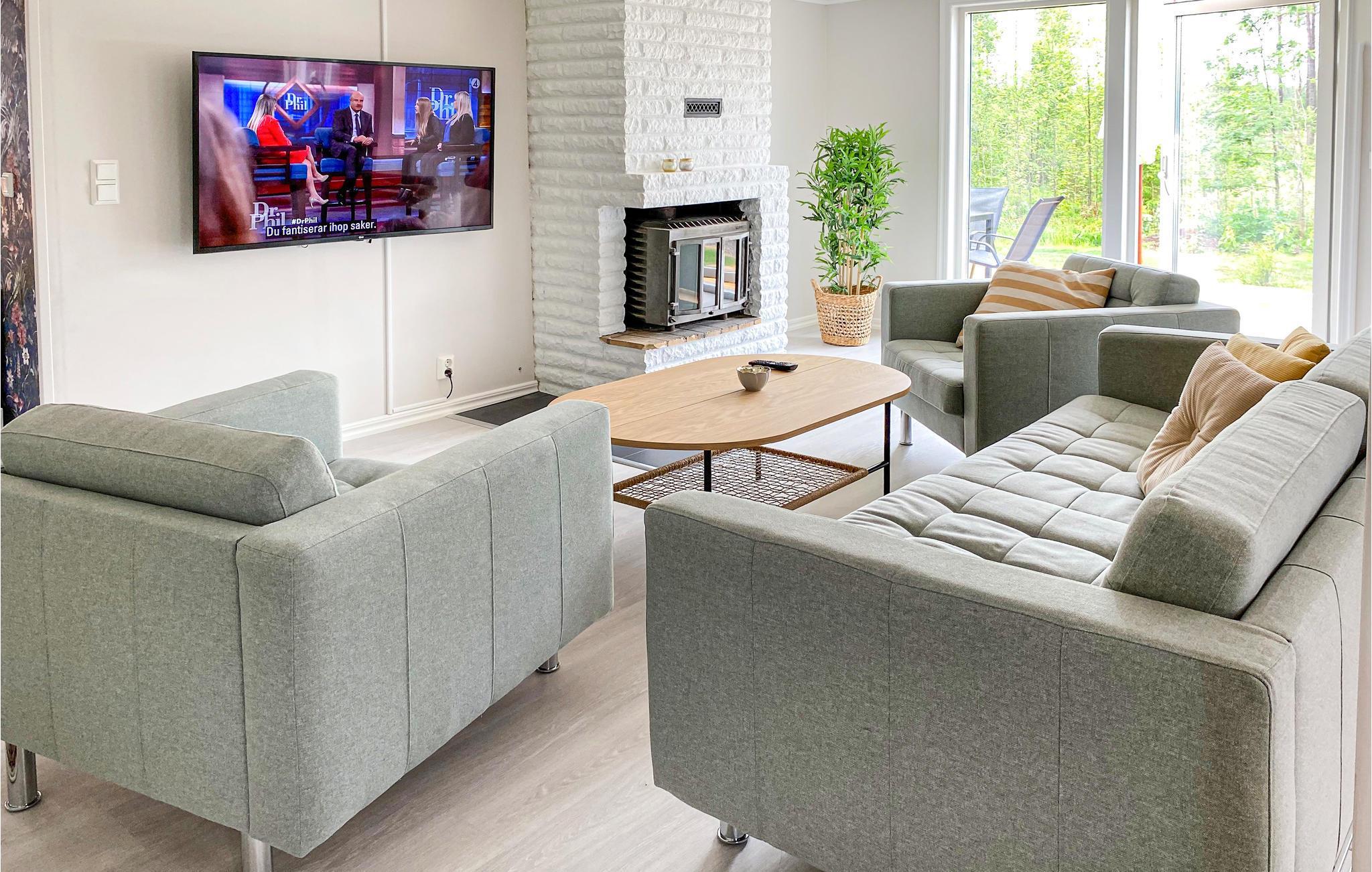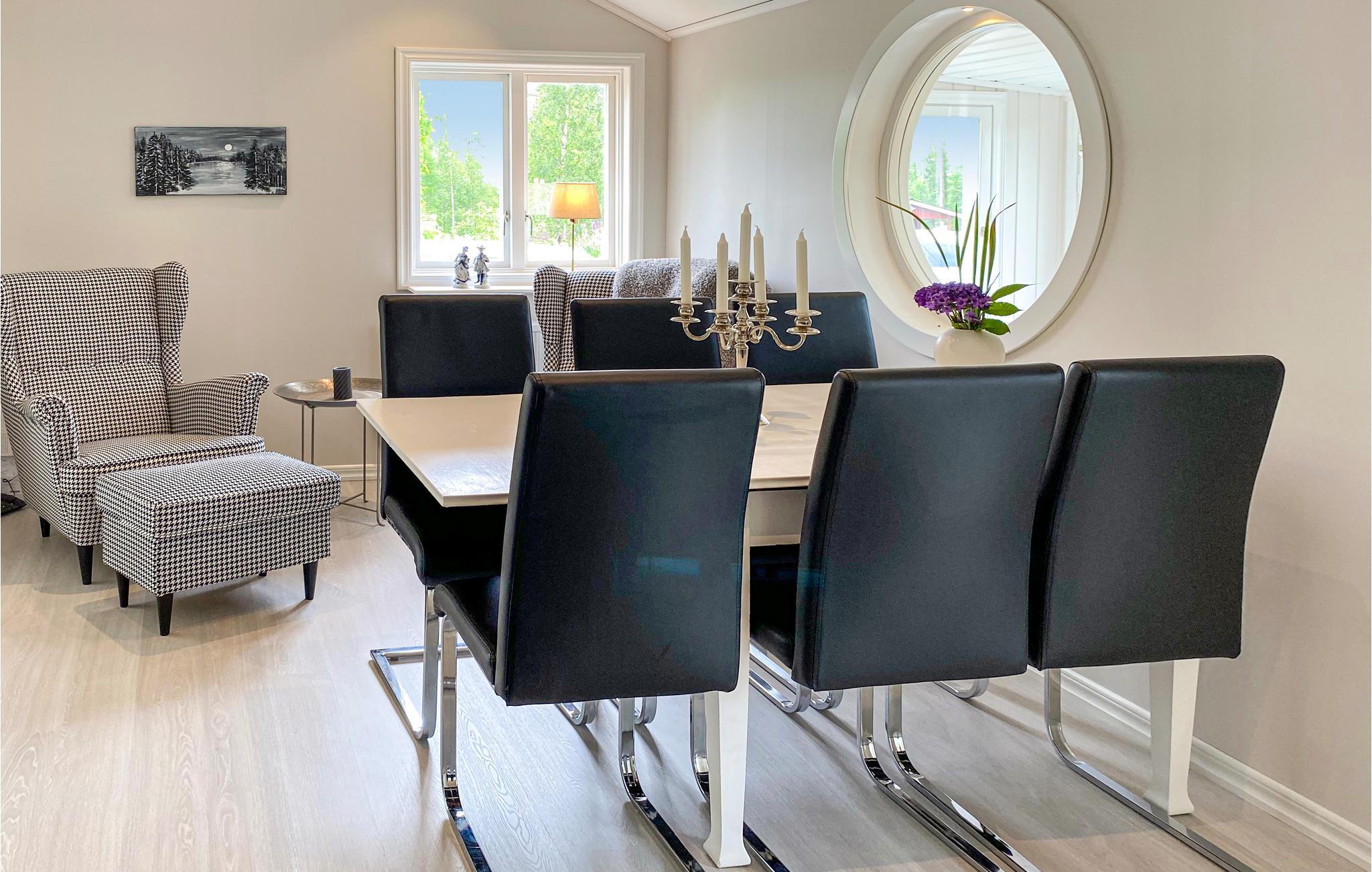 Inredningen är inbjudande, modern och mysig. Sovrummen lovar dig vilsamma nätter och gott om utrymme. I det stora köket kan ni förbereda frukost tillsammans och äta den på den vackra träterrassen. Vardagsrummet är härligt och inbjuder er som familj att mysa i sofforna och titta på er favoritfilm eller spela brädspel. Från en liten balkong kan du njuta av en panoramautsikt över sjön och landsbygden.