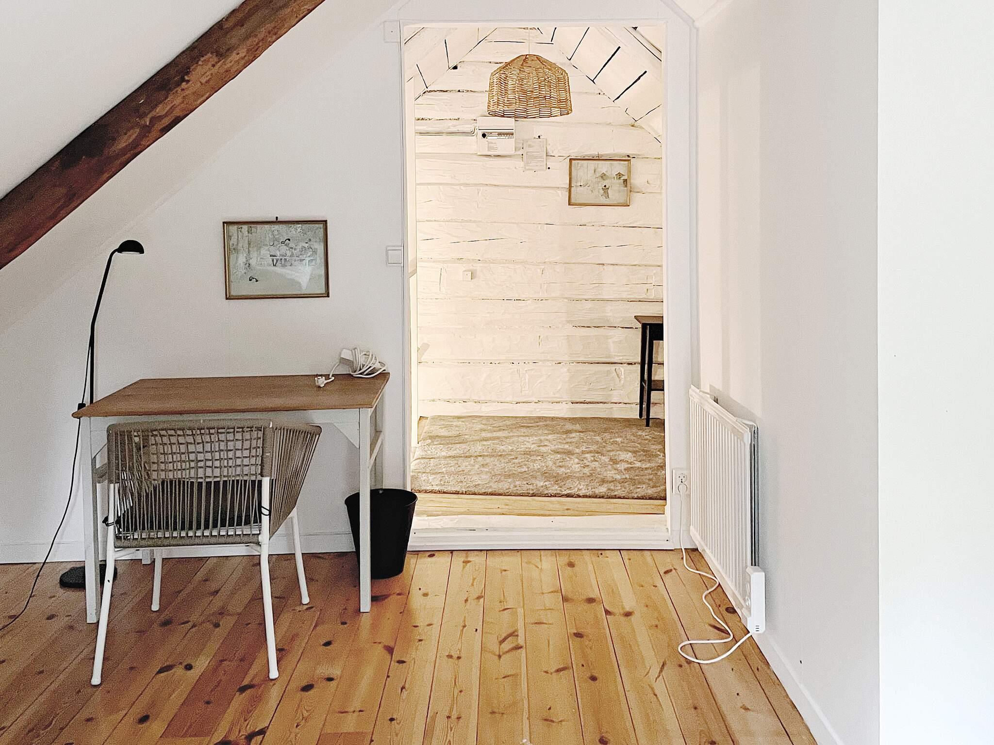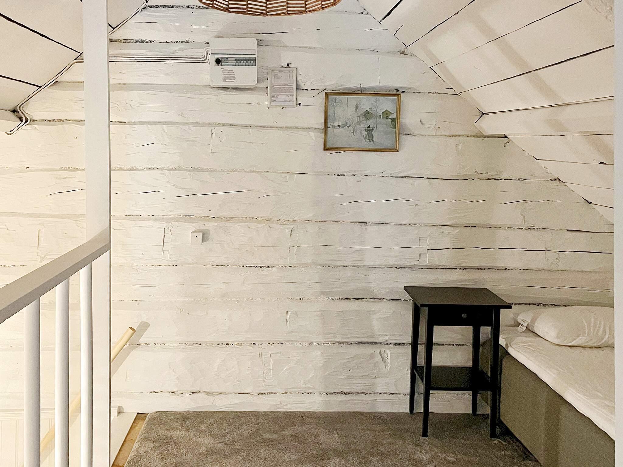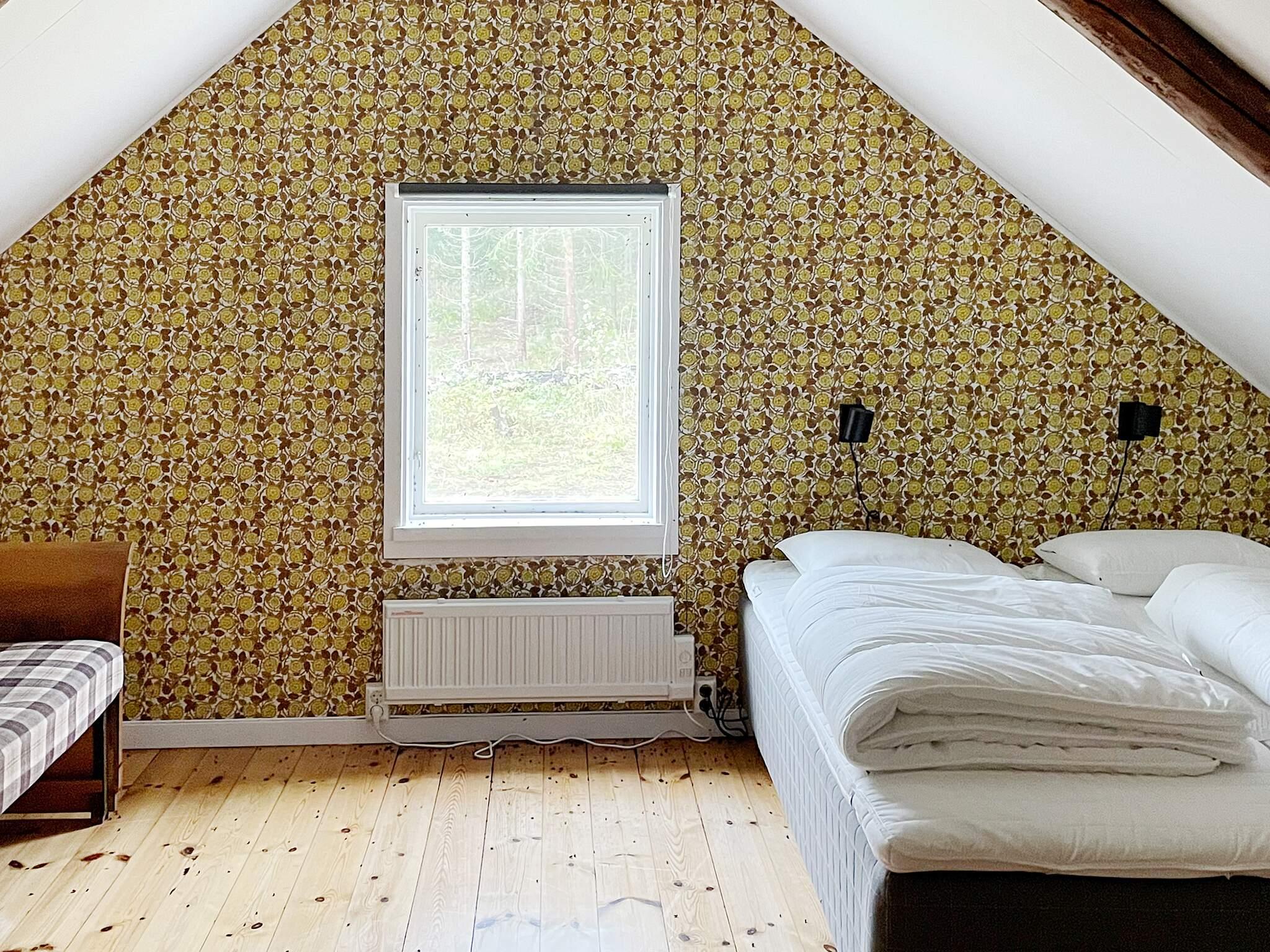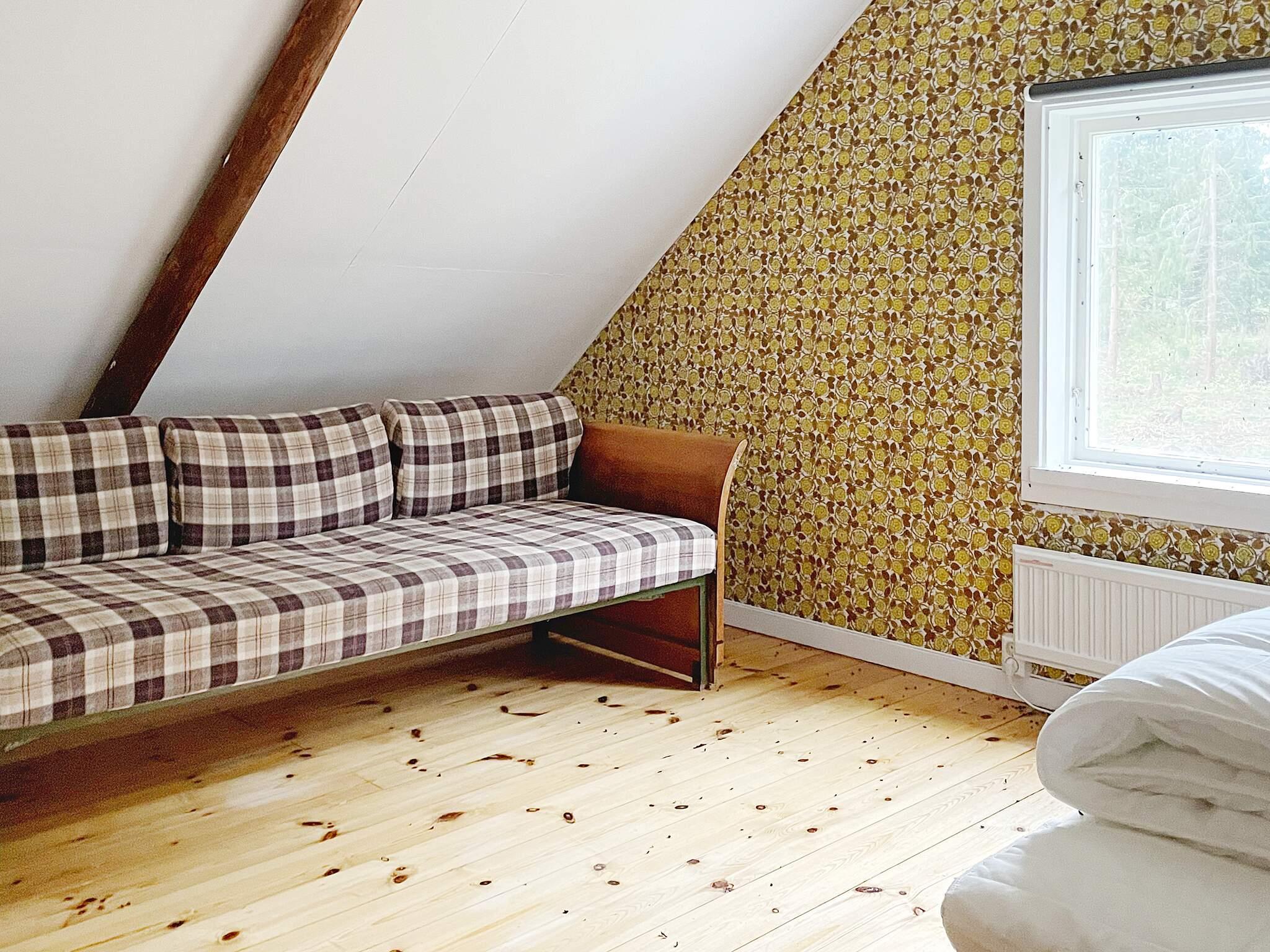 Mycket fin stuga med vacker vy över åkrar och mark. Här välkomnas ni av en entré med högt i tak upp till nock. Här når ni trappan upp till övervåningen samt köket. Rymligt och charmigt kök med lågt i tak och trevligt matbord invid fönster. Köket är utrustat med kyl/frys, kokplattor, micro, kaffekokare, vattenkokare m.m. Från kök når ni ett behagligt sovrum med sovplats för två i våningssäng. På övervåningen finner ni tre ytterligare sovplatser, varav en säng när man kommer upp för trappan och två sängar i ett annat rum men som saknar dörr. I separat hus i trädgården finns dusch, förbränningstoa och handfat. Ute på tomt finns grillmöjligheter och fina gräsytor som bjuder in till lek. Här vaknar ni till en vacker morgonsol i lugn och rogivande miljö!