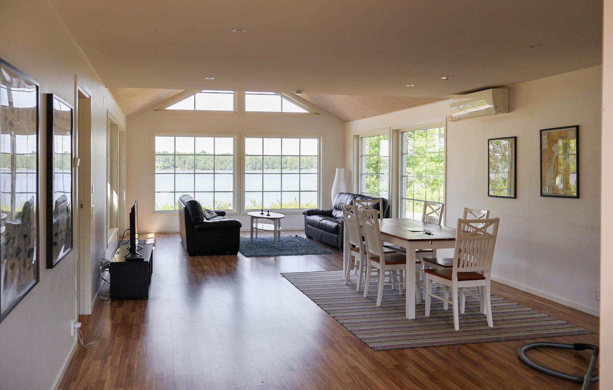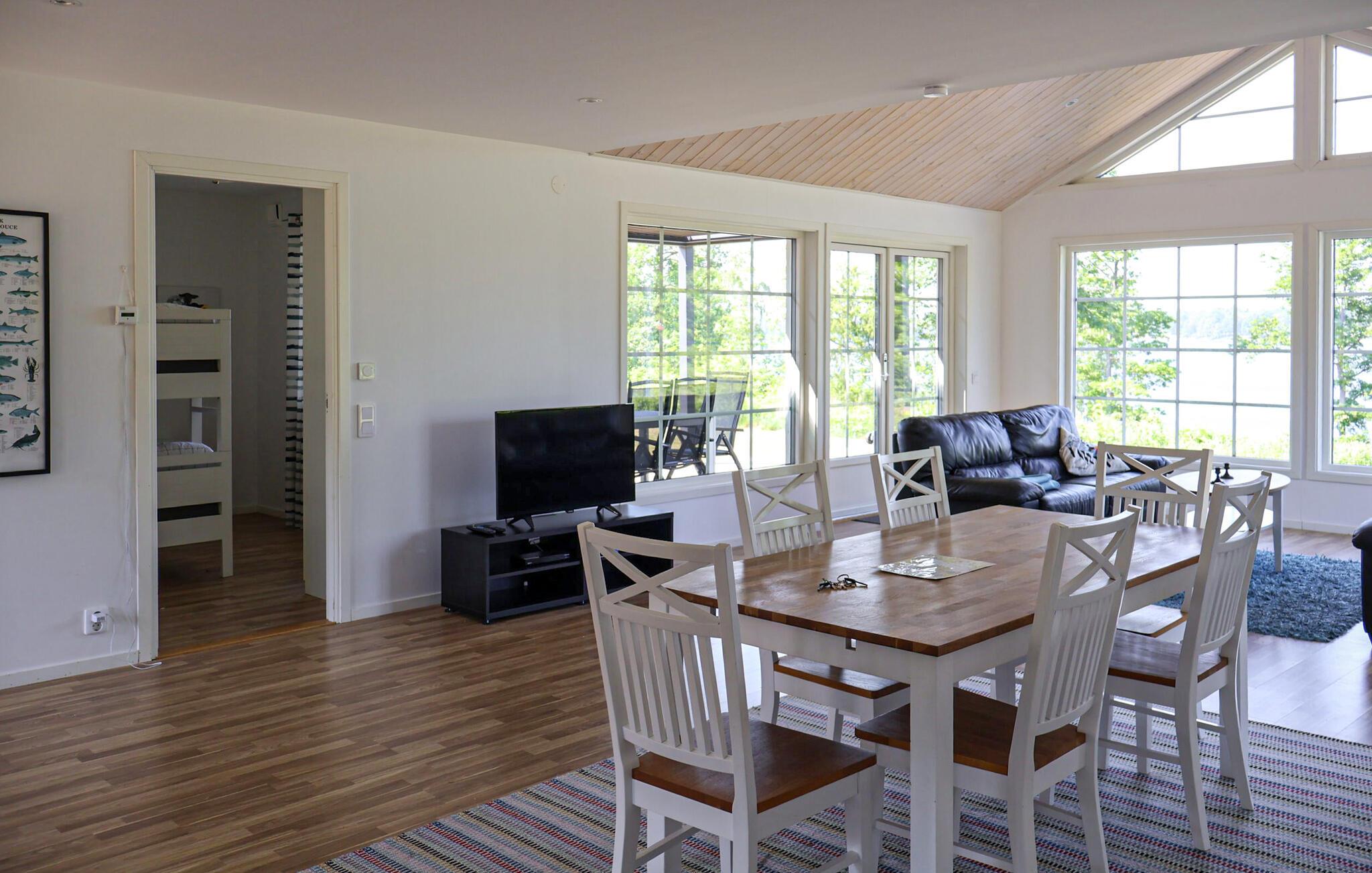 Genom en fantastisk fönsterfasad ser du ut över sjön Bolmen i detta semesterhus. En kort promenad tar dig till sjön, där du kan bada och en brygga väntar på dig. Båten ligger också förtöjd vid bryggan. Stranden och bryggan delas med ett annat fritidshus. Golvvärmen gör semesterhuset riktigt mysigt även på hösten och vintern. Sjön Bolmen är värd att se och är ett bra fiskevatten. Du kan fånga abborre, gädda och gös. Besök Astrid Lindgrens Värld och träffa Pipi Långstrump eller Emil från Lönneberga, du kan vara cowboy för en dag i High Chaparral. I Store Mosse nationalpark kan du uppleva vad tystnad verkligen betyder.