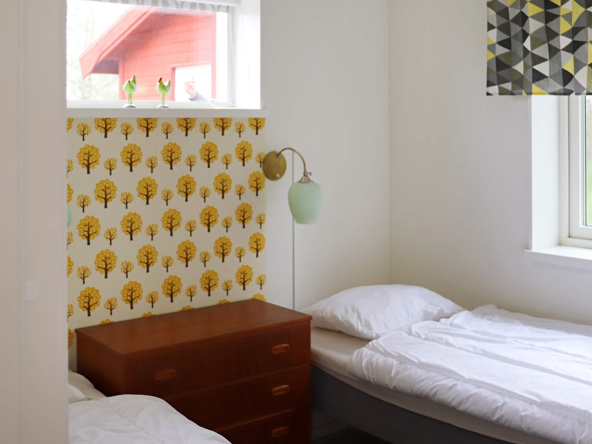Inuti är huvudhuset ljust, välkomnande och omtänksamt möblerat, med ett kök och matplats i öppen planlösning som mynnar ut i ett mysigt vardagsrum. Hemmet rymmer bekvämt upp till sex gäster: fyra sovplatser i huvudbyggnaden och ytterligare två i ett mindre annex i närheten, anslutna av den rymliga träterrassen. Huvudhuset har två sovrum - ett med dubbelsäng och det andra med två enkelsängar - plus ett helkaklat badrum med dusch. En tvättmaskin, torktumlare, golvvärme och Wi-Fi garanterar bekvämlighet och komfort under hela din vistelse.