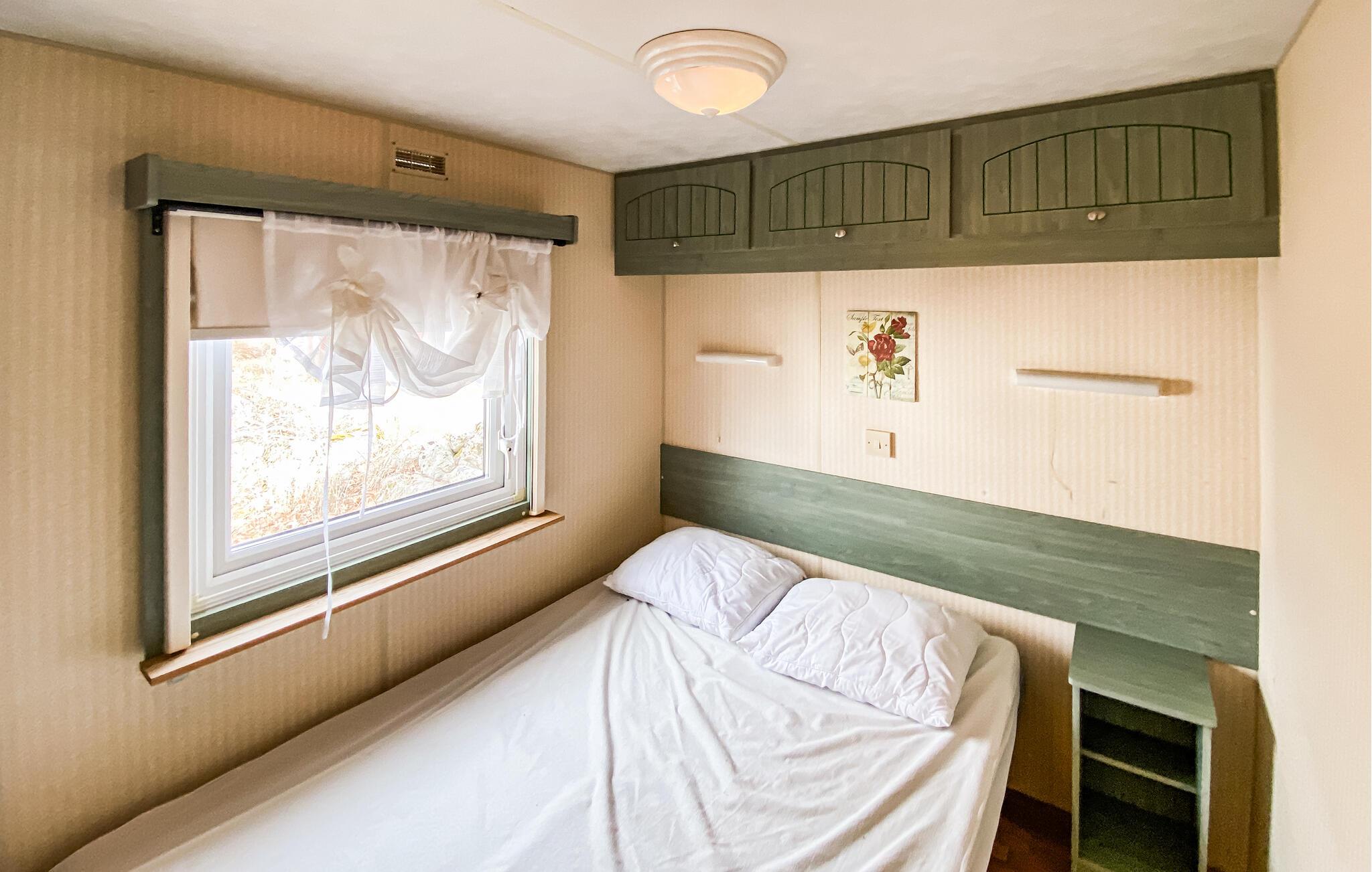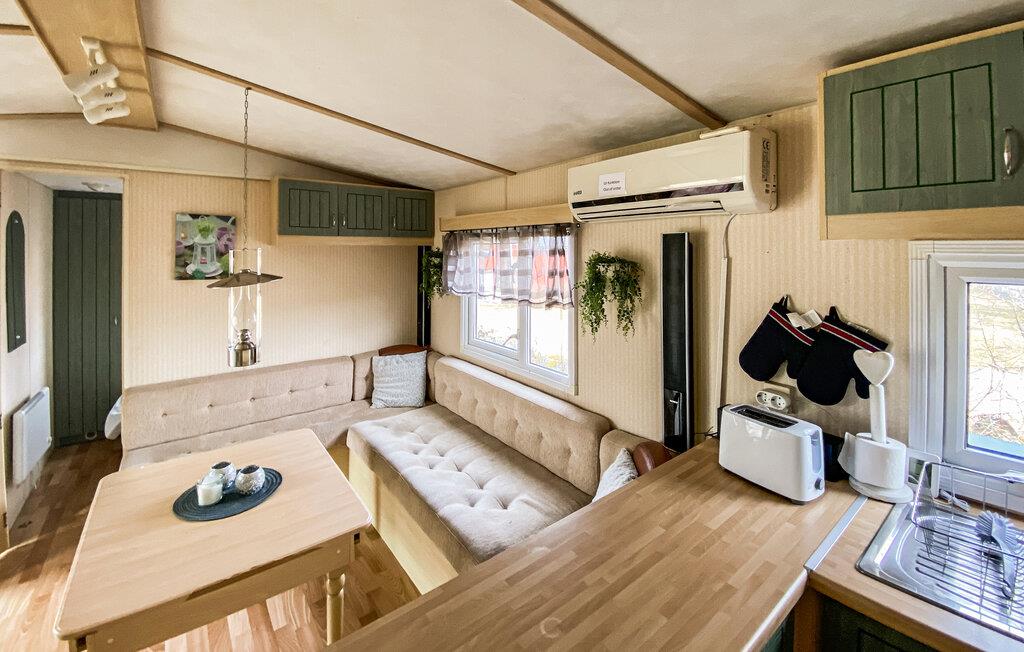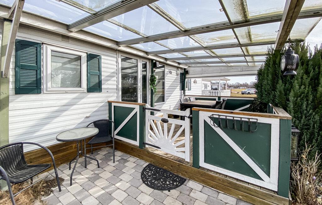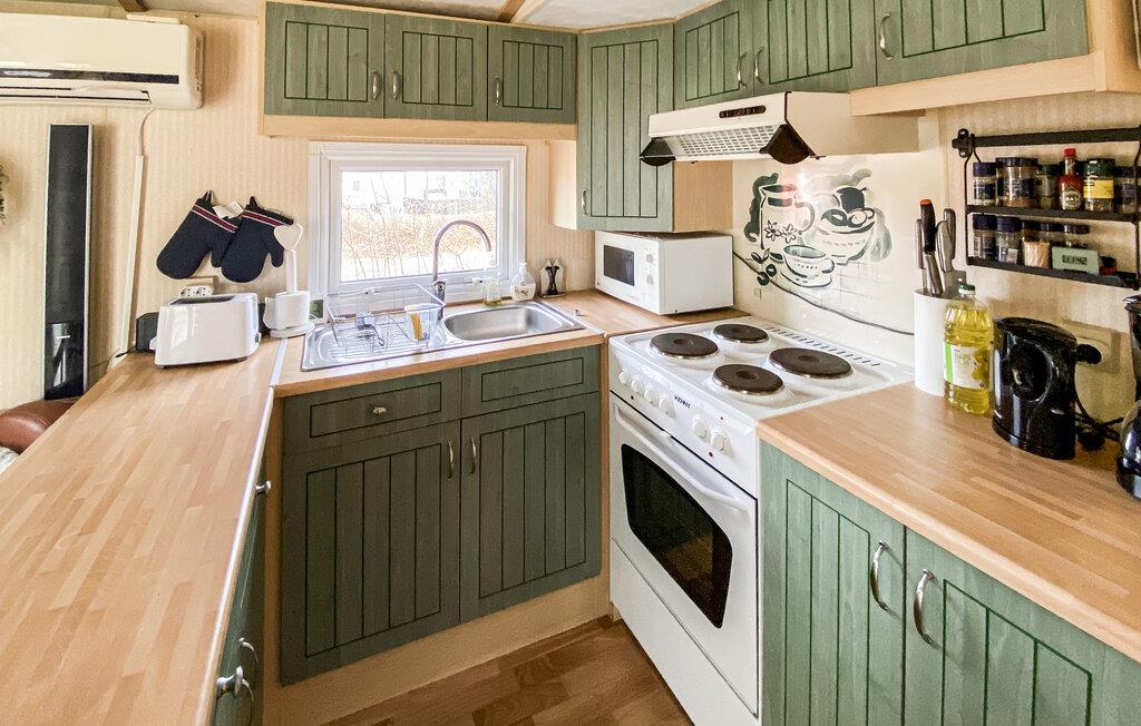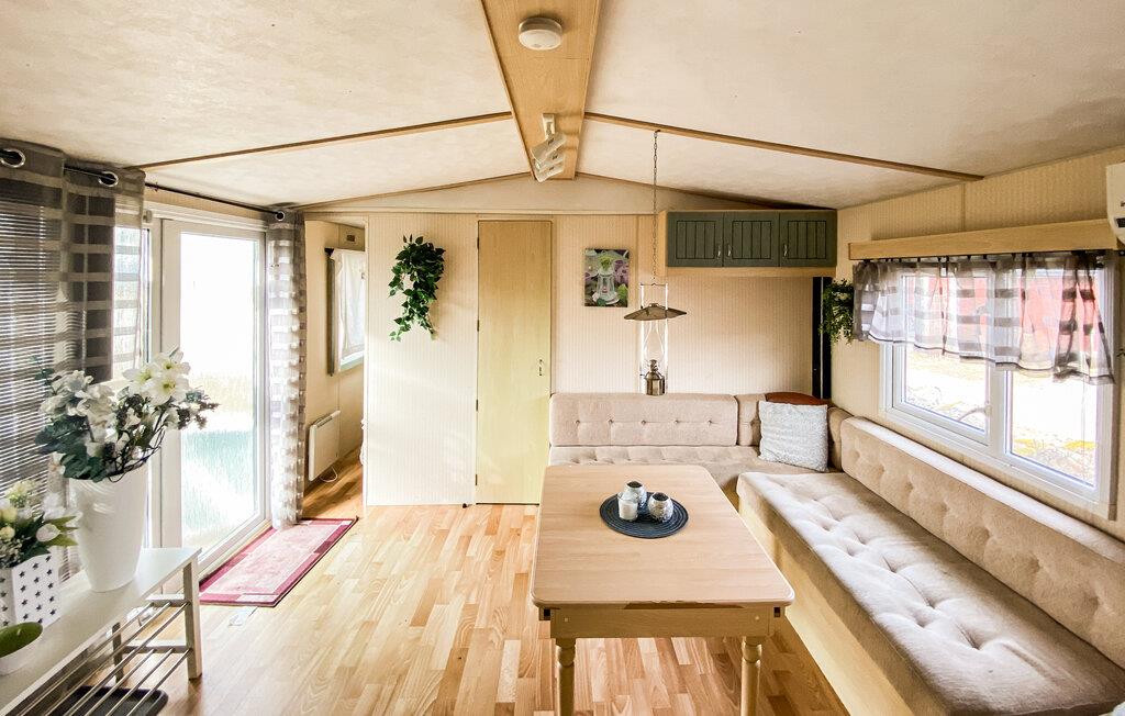 Detta semesterhus ligger på Eriksöre campingplats och är perfekt för en avkopplande semester vid vattnet. Koppla av med en kopp kaffe i den mysiga sittgruppen, spela ett parti kort med barnen eller laga färska måltider tillsammans i köket.