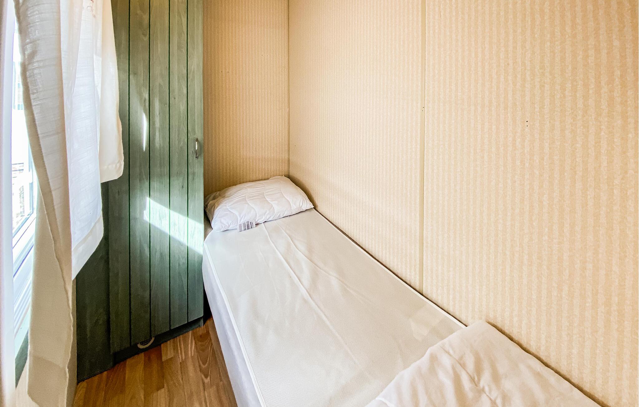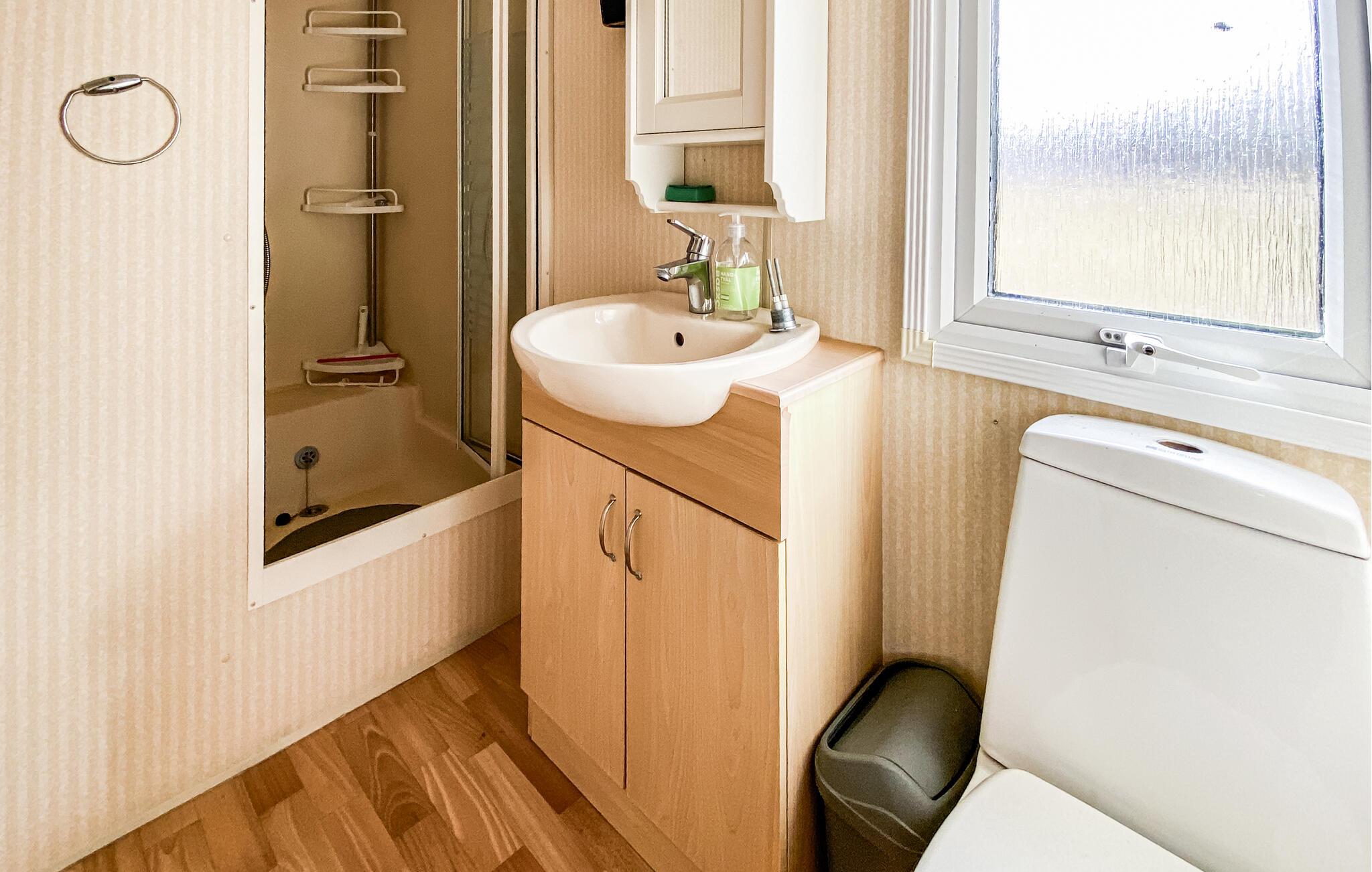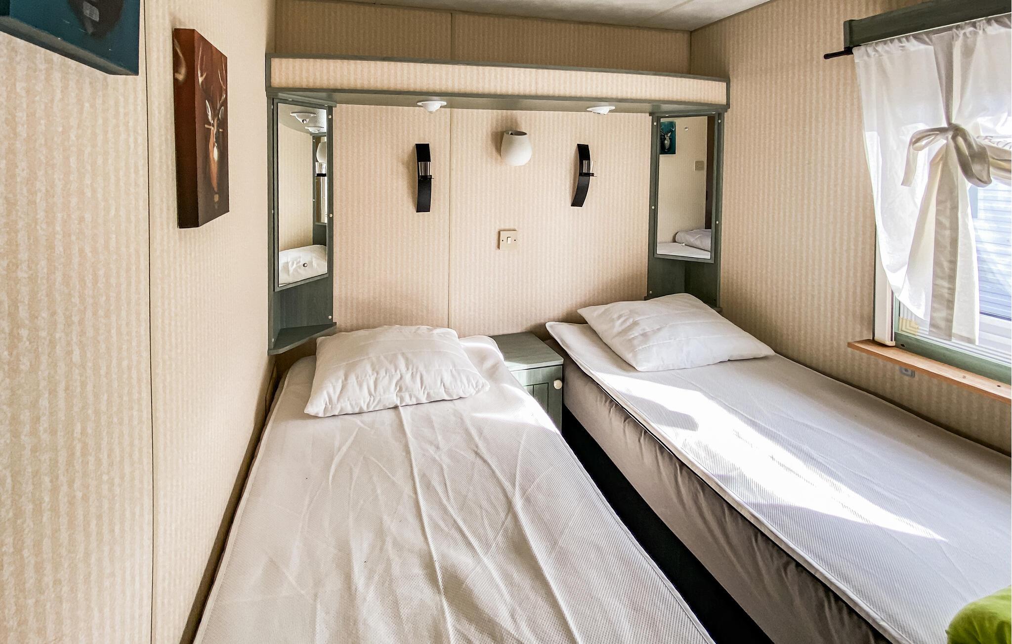 Detta semesterhus ligger på Eriksöre campingplats och är perfekt för en avkopplande semester vid vattnet. Koppla av med en kopp kaffe i den mysiga sittgruppen, spela ett parti kort med barnen eller laga färska måltider tillsammans i köket.