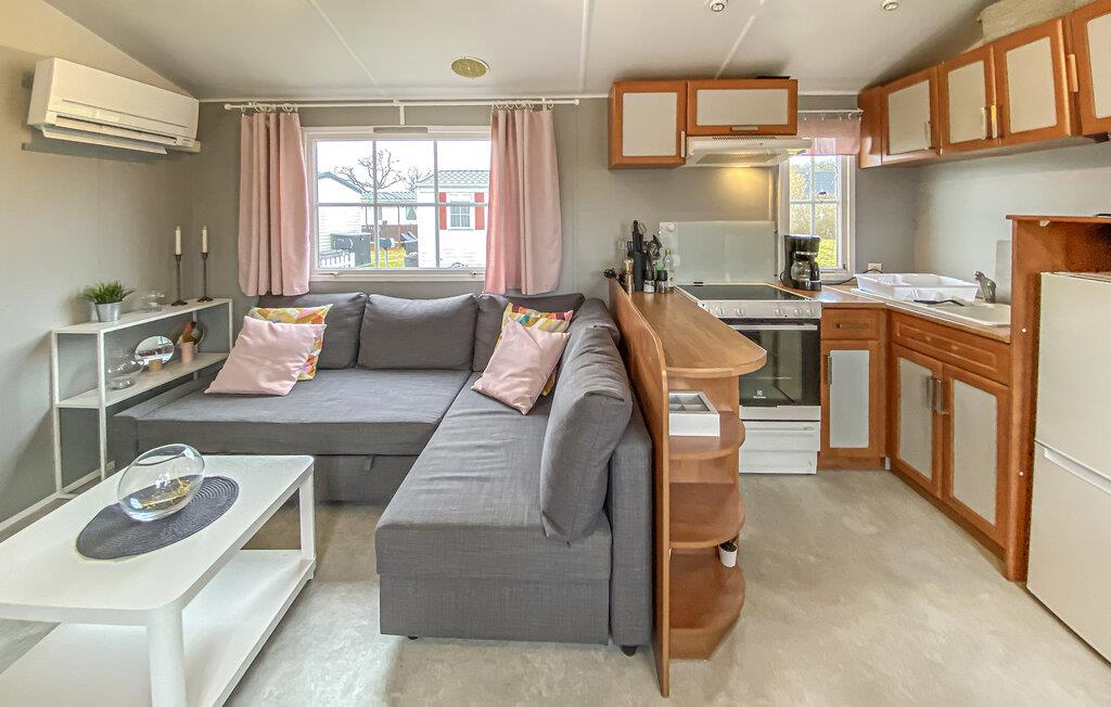 Detta semesterhus ligger på Eriksöre campingplats och är perfekt för en avkopplande semester vid vattnet. Koppla av med en kopp kaffe i den mysiga sittgruppen, spela ett parti kort med barnen eller laga färska måltider tillsammans i köket.