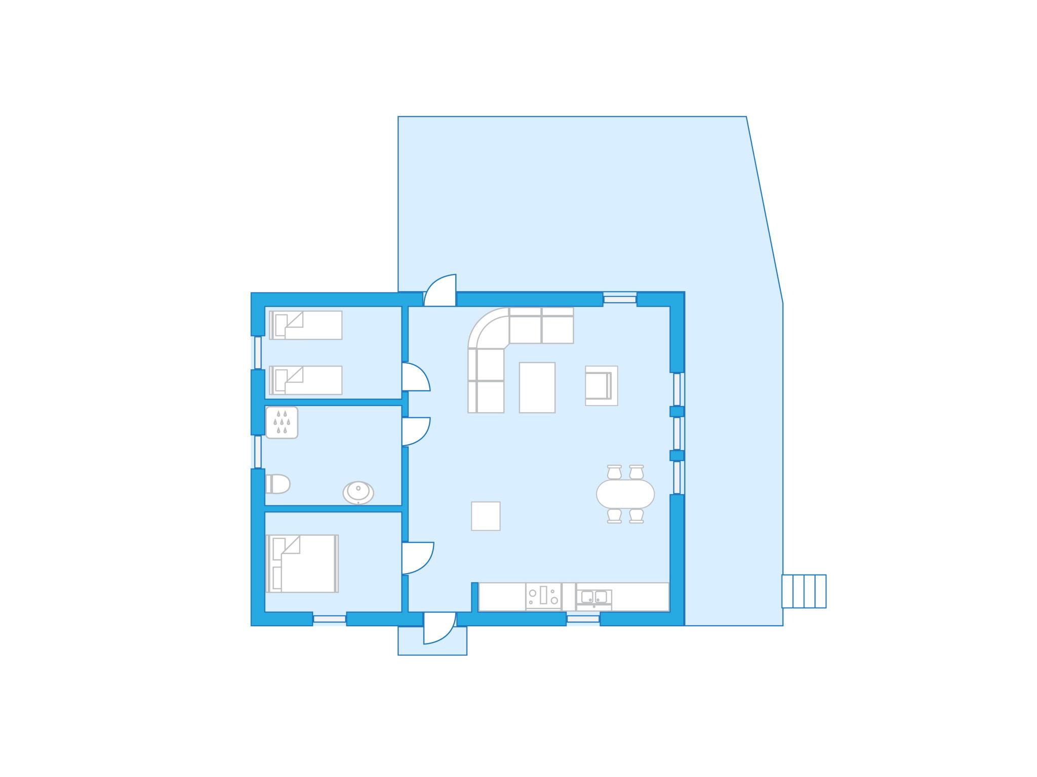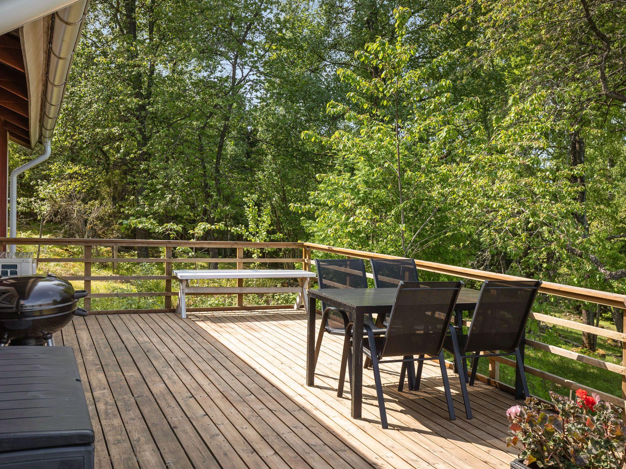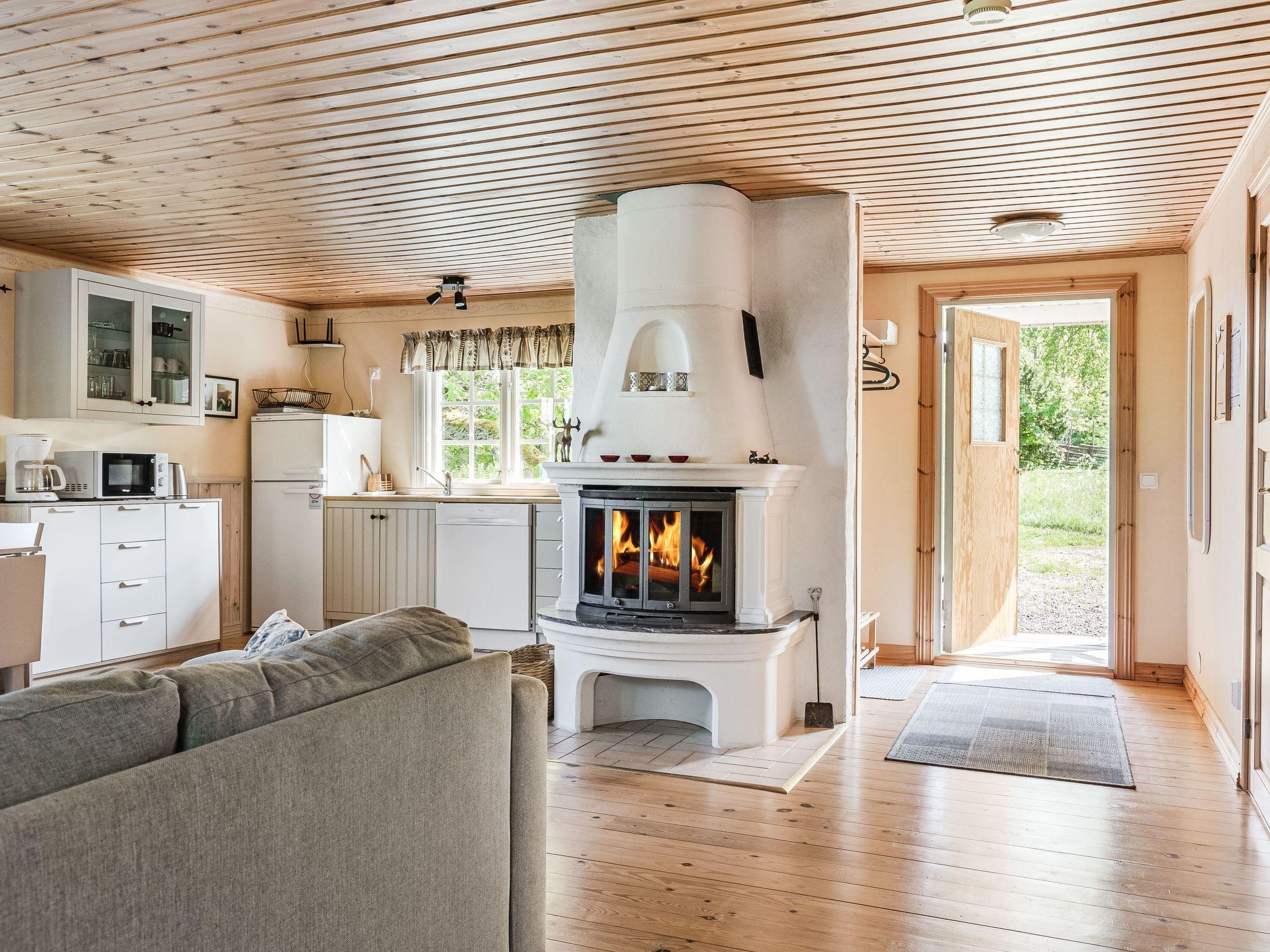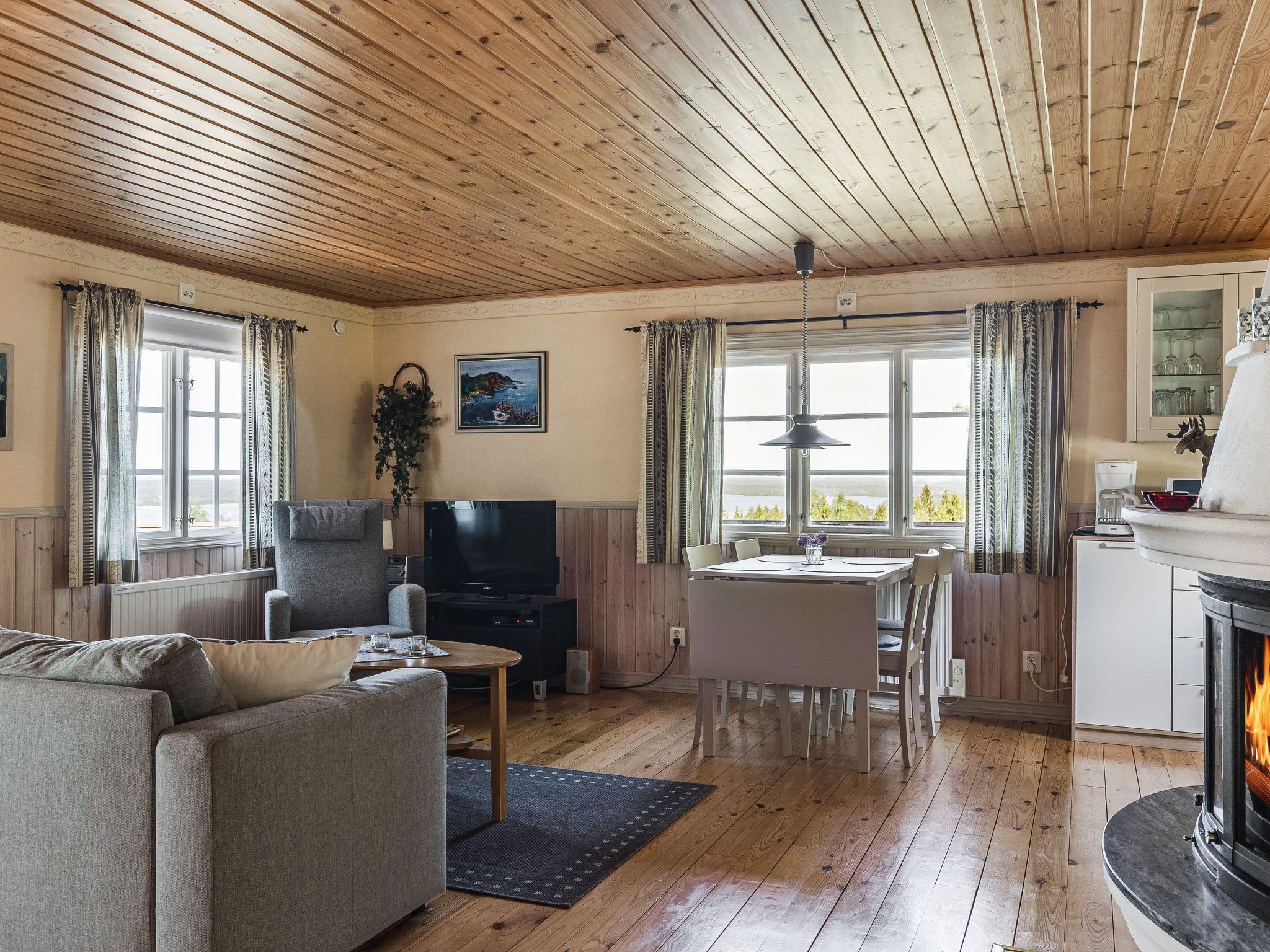 "Lunnekullen", 3-room house 58 m2. Bright, tasteful furnishings: living/sleeping room with 1 double sofabed, open-hearth fireplace, dining table, satellite TV, CD-player and DVD. Exit to the veranda. 1 room with 1 double bed. 1 room with 2 beds. Open kitchen (4 hot plates, oven, dishwasher, toaster, kettle, microwave, freezer, electric coffee machine). Shower/WC. Electric heating. Wooden floors. Large balcony. Balcony furniture, barbecue (portable). Panoramic view. Facilities: washing machine, iron, children's high chair, baby cot. Please note: non-smoking house. Smoke alarm, fire extinguisher. Freezer approx. 40 l.