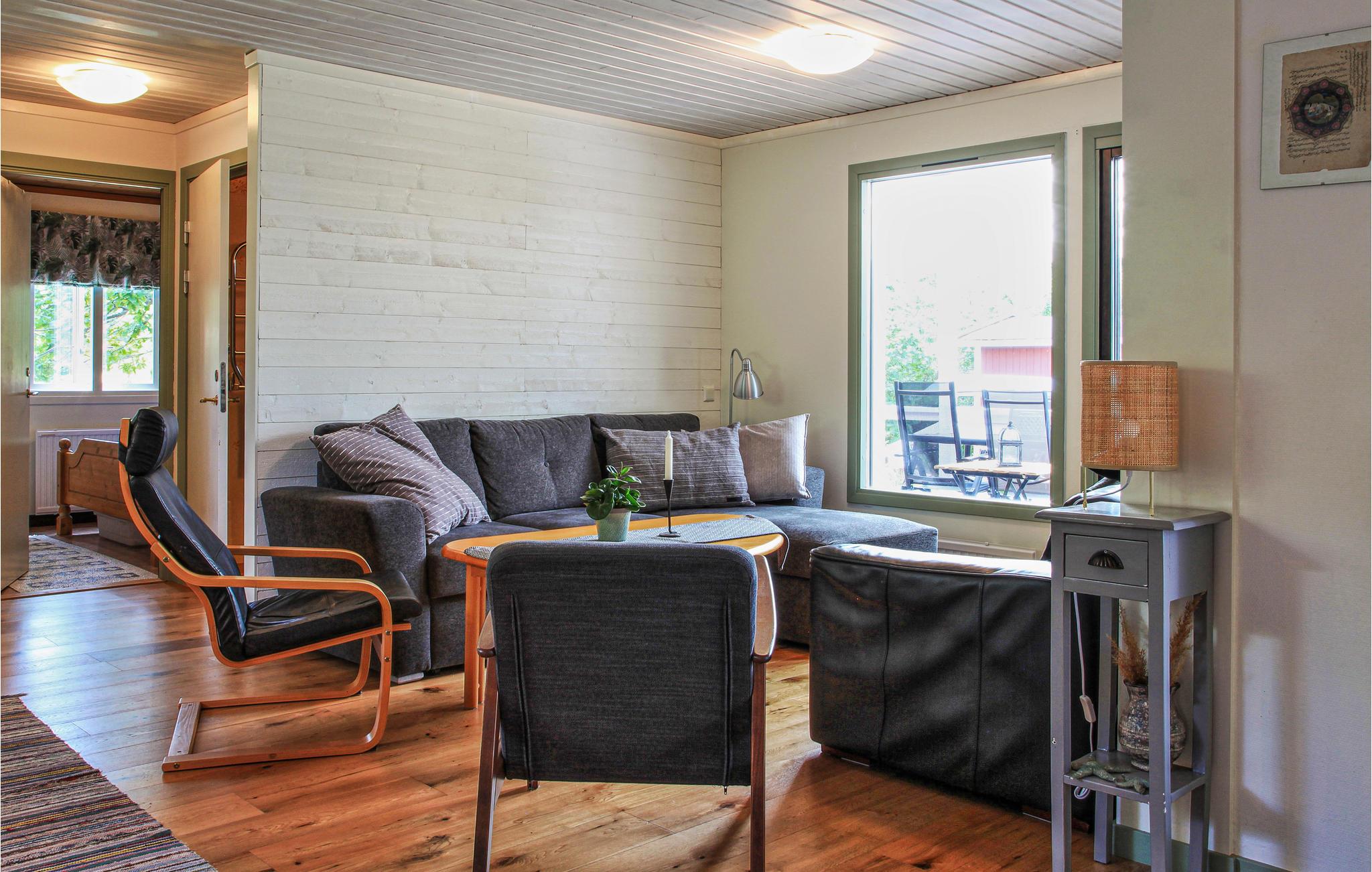 Stugan har rymliga ytor och en öppen planlösning med en stor terrass på baksidan. Huset ligger på en hörntomt och har endast en sidodörr. Vacker utsikt över landsbygden och många fina promenadstråk i området. Det finns en tennisbana och en lekplats i området. Passa på att spela bordtennis på terrassen eller sitta runt lägerelden framför eldstaden på baksidan. Det här är ett hus som är perfekt för att underhålla många människor, det erbjuder stora ytor och många aktiviteter i huset och i närområdet. Området erbjuder också bra fiske längs hela kusten och även fiske i inlandet.