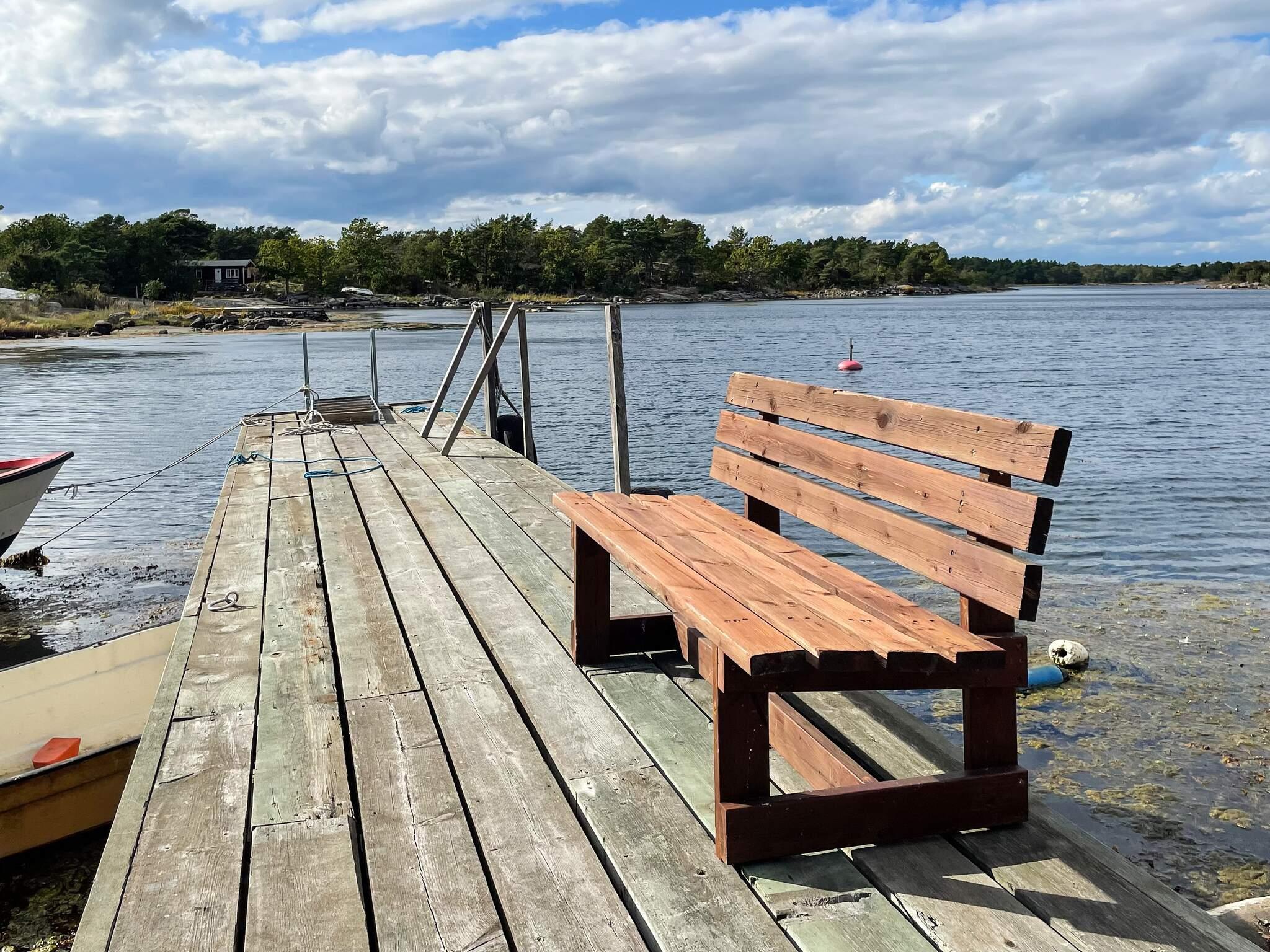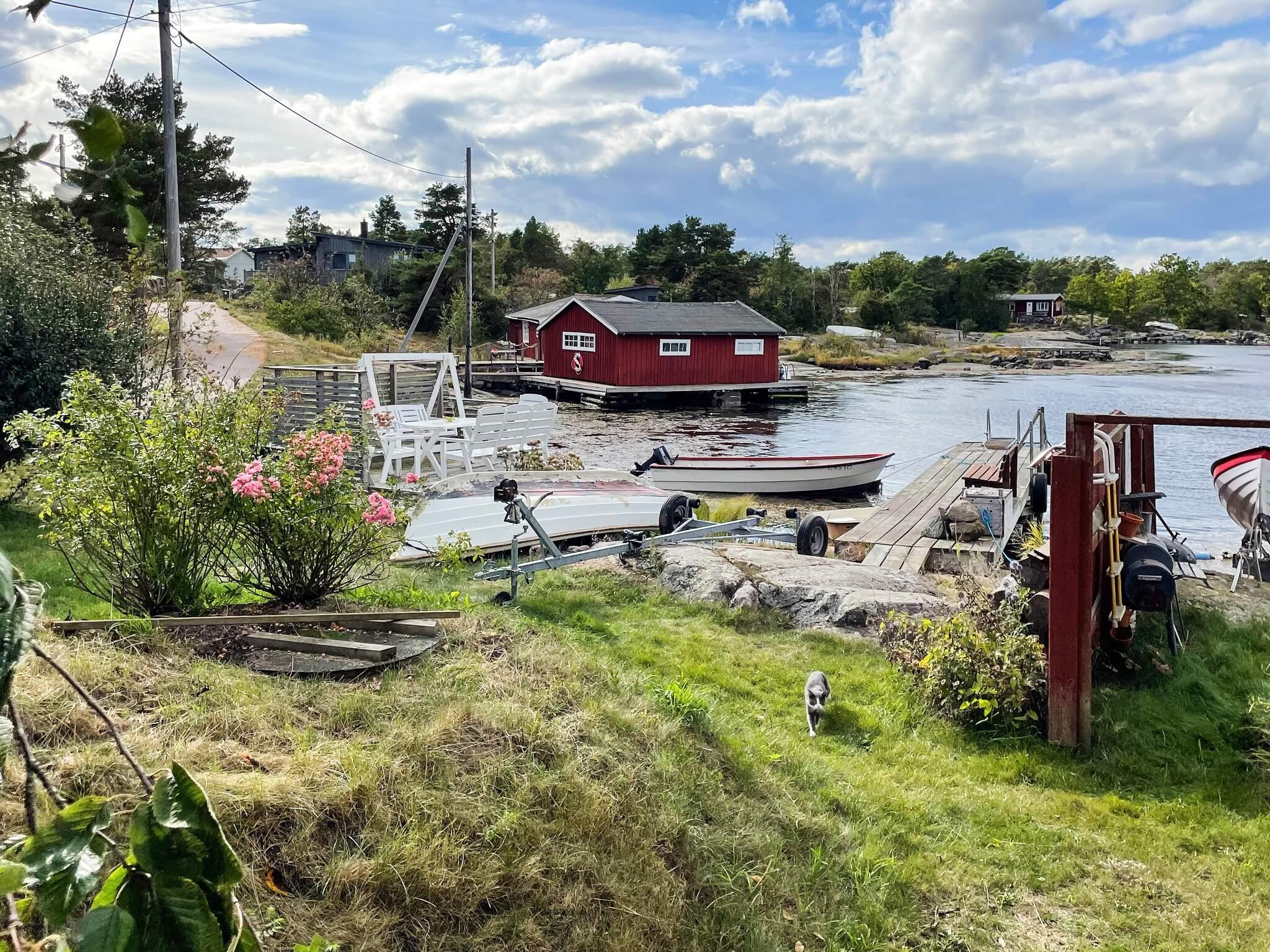 Det finns en liten roddbåt för att utforska området till havs. Notera att bryggan delas med annan båtägare som har sin båtplats här. Flytvästar för både barn och vuxna finns. Framför huset ner mot havet ligger ett grannhus, så tomten som tillhör huset ligger till vänster om det huset och smalnar därmed av ner mot havet. Ni har två uteplatser även uppe vid huset. På framsidan finns en altan under tak där ni kan njuta av havsutsikten i sköna utemöbler. Vid husets gavel finns ett altandäck med loungemöbler. Här kan ni njuta av att grilla en bit mat till kvällen.