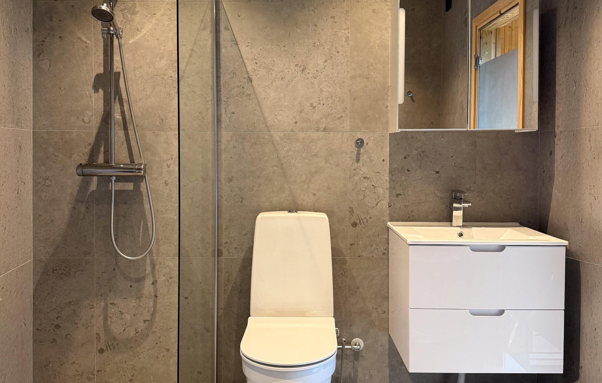 Badrum (nr. 1) - WC: Varmt och kallt vatten. Dusch