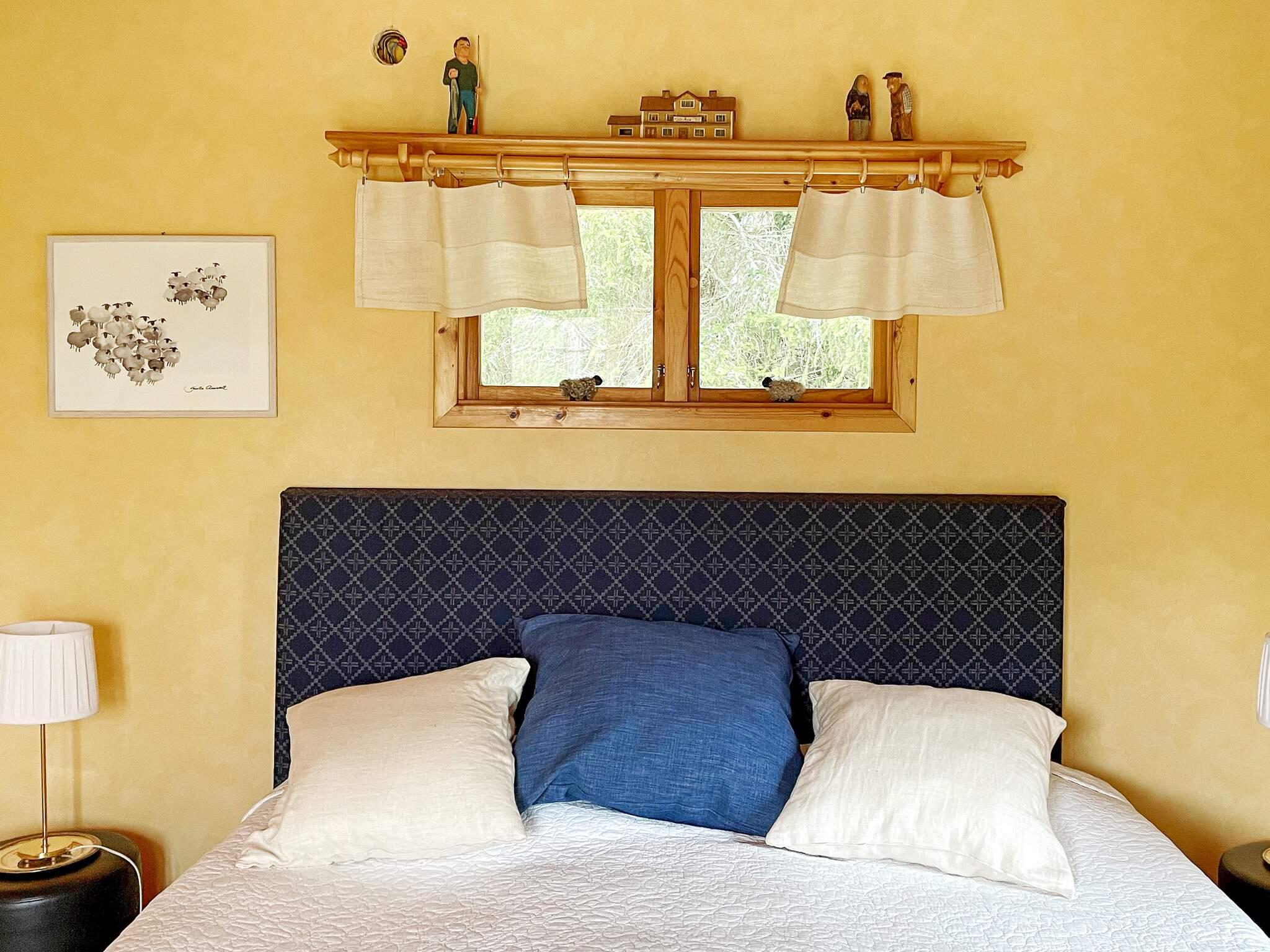 Utemöbel och tillgång till kolgrill som bjuder in till trevliga middagar blickandes över den grönskande trädgården. I trädgården finns det biodling, lekredskap för barnen och cyklar att låna om man önskar. Ägarna bor i stora huset lite längre bort på tomten, men man disponerar över sin del i anslutning till huset. Husdjur ska vara kopplade när ni vistas ute på tomten.