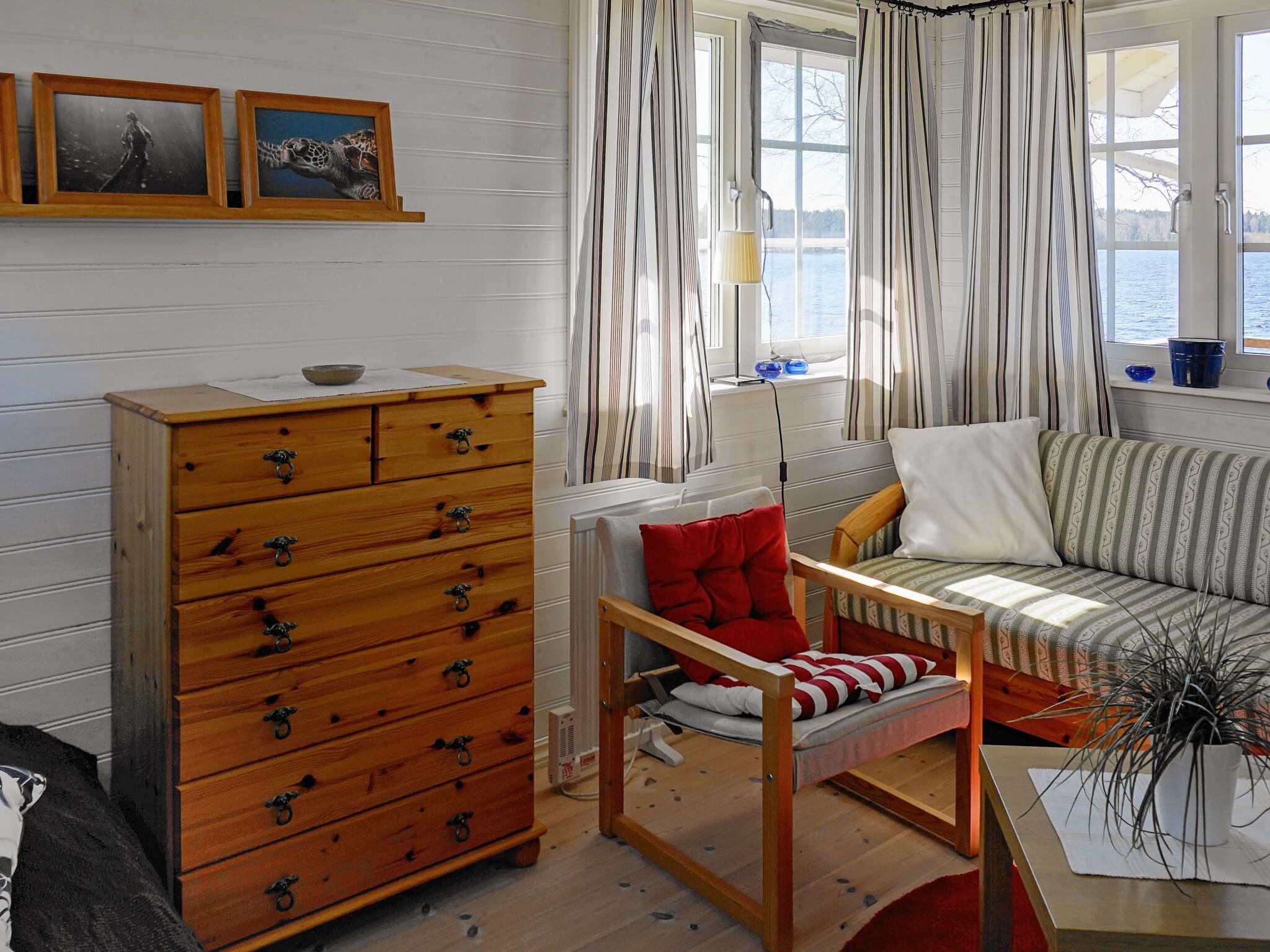 och: altan med tak, elvärme, strandtomt 2000 m2, bekväm möblering, utsikt över vatten, Rökförbud, stuga m/1.våning