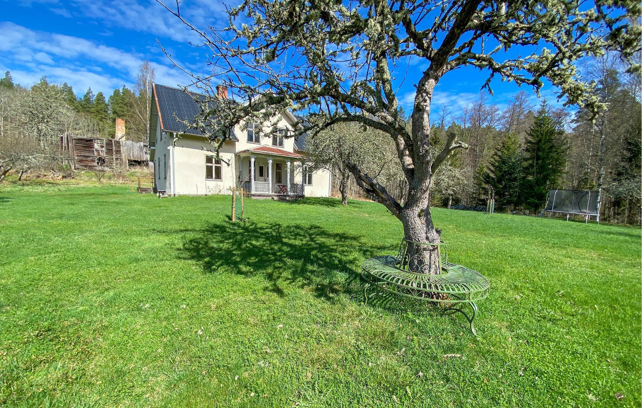 Gå ut på verandan genom de gamla dubbeldörrarna och andas in den friska luften från landet. Den stora trädgården med uppvuxna träd inbjuder till lek och umgänge. Låt barnen hoppa på studsmattan medan ni njuter av lugnet i omgivningarna. Hyr en roddbåt och ta en tur på sjön. En kort gångstig leder direkt till vattnet.