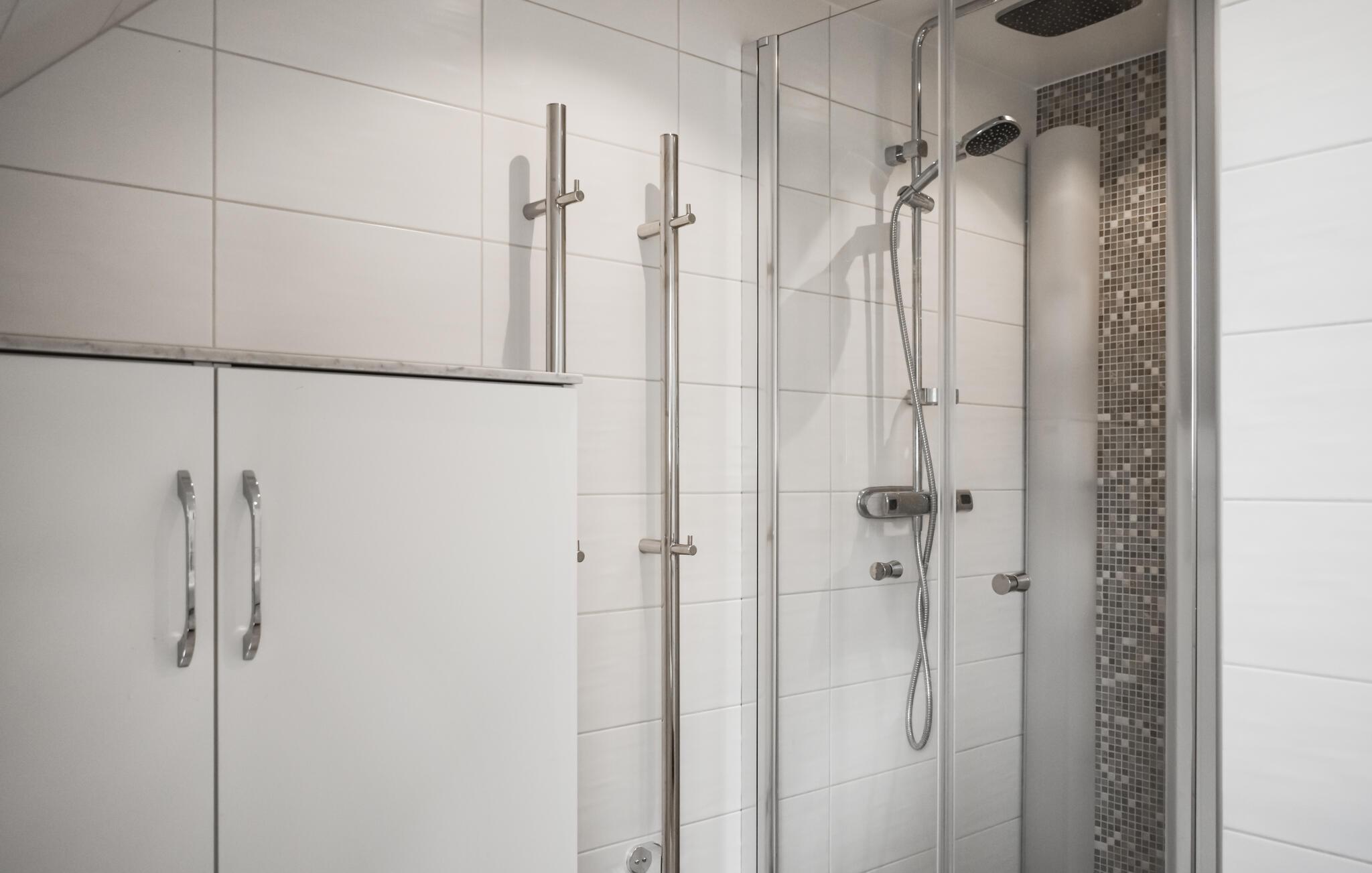 Badrum (nr. 2) - WC: Varmt och kallt vatten. Dusch
