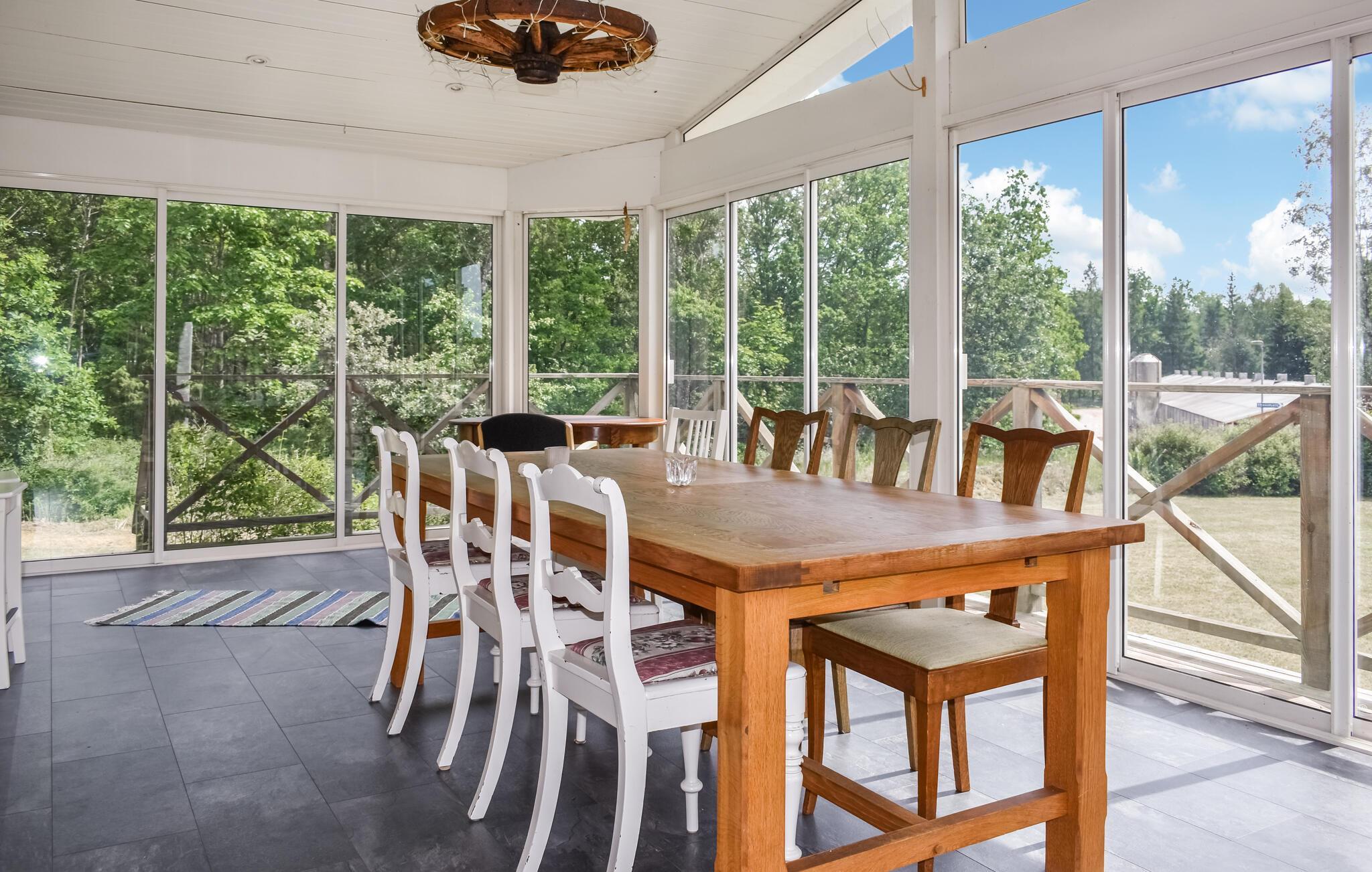 Omgivet av skogar med rådjur, älgar och hjortar erbjuder detta typiskt svenska semesterhus vid Yasjön en fridfull oas för naturälskare. Den omgivande naturen är rik på svamp och bär, vilket gör promenader genom skogen till en speciell upplevelse. Ditt hus utstrålar mysighet och komfort. Det rymliga vardagsrummet med sin klassiska skandinaviska design erbjuder den perfekta platsen att koppla av på. Och vinterträdgården är en underbar plats att njuta av måltider tillsammans och tillbringa mysiga kvällar.