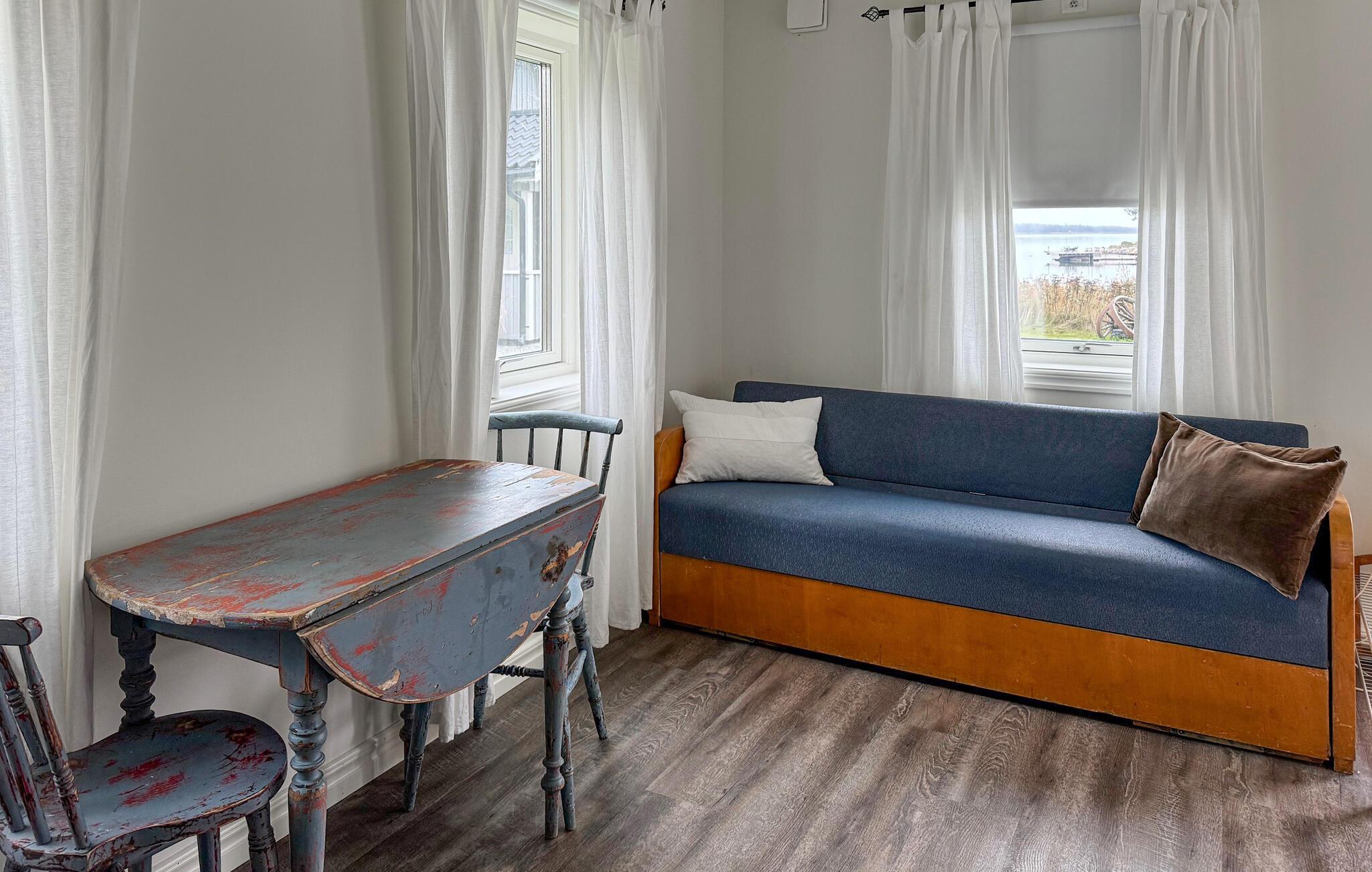 Detta vackra semesterhus ligger i vackra omgivningar precis vid vattnet. Huset är ljust och bekvämt inrett och har ett uthus, så du har gott om utrymme. Tillbringa avkopplande eftermiddagar med semesterläsning och mysiga kvällar i trevligt sällskap med utsikt över grönskan.
