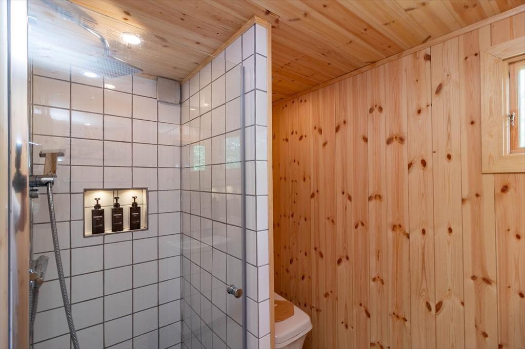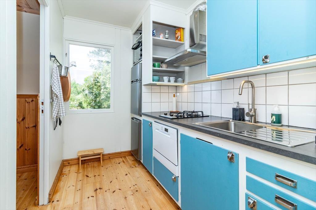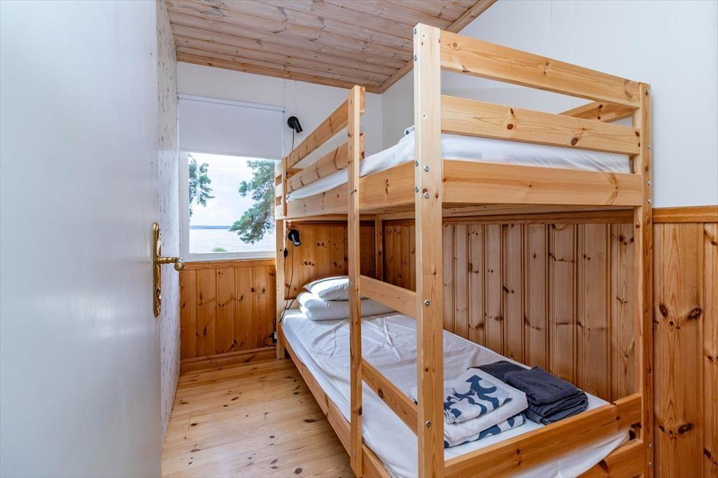 Das Haus verfügt über eine Wohnfläche von etwa 60 m² und bietet Platz für bis zu 4 Personen. Über die Terrasse mit Seeblick betrittst du das Haus und kommst direkt in einen Wohnbereich mit Sofa, Kamin, Gasheizgerät, Smart-TV und kleinem Essbereich. Das Sofa kann optional als Schlafsofa genutzt werden. Die Küche ist ausgestattet mit 2-Platten-Gasherd, Ofen, Dunstabzugshaube, zwei Kühlschränken (einer mit Gefrierfach), Spülmaschine und Nespresso-Kaffeemaschine. Es gibt zwei Schlafzimmer: Das erste mit zwei Einzelbetten, die als Doppelbett zusammengestellt sind, das zweite mit einem Etagenbett. Das Badezimmer verfügt über eine Dusche und eine Verbrennungstoilette. Zur Außenausstattung gehören die teilweise überdachte Terrasse, Terrassenmöbel, Grill und Parkplatz. Internet ist verfügbar, und Kaminholz sowie ein Ruderboot sind inklusive.