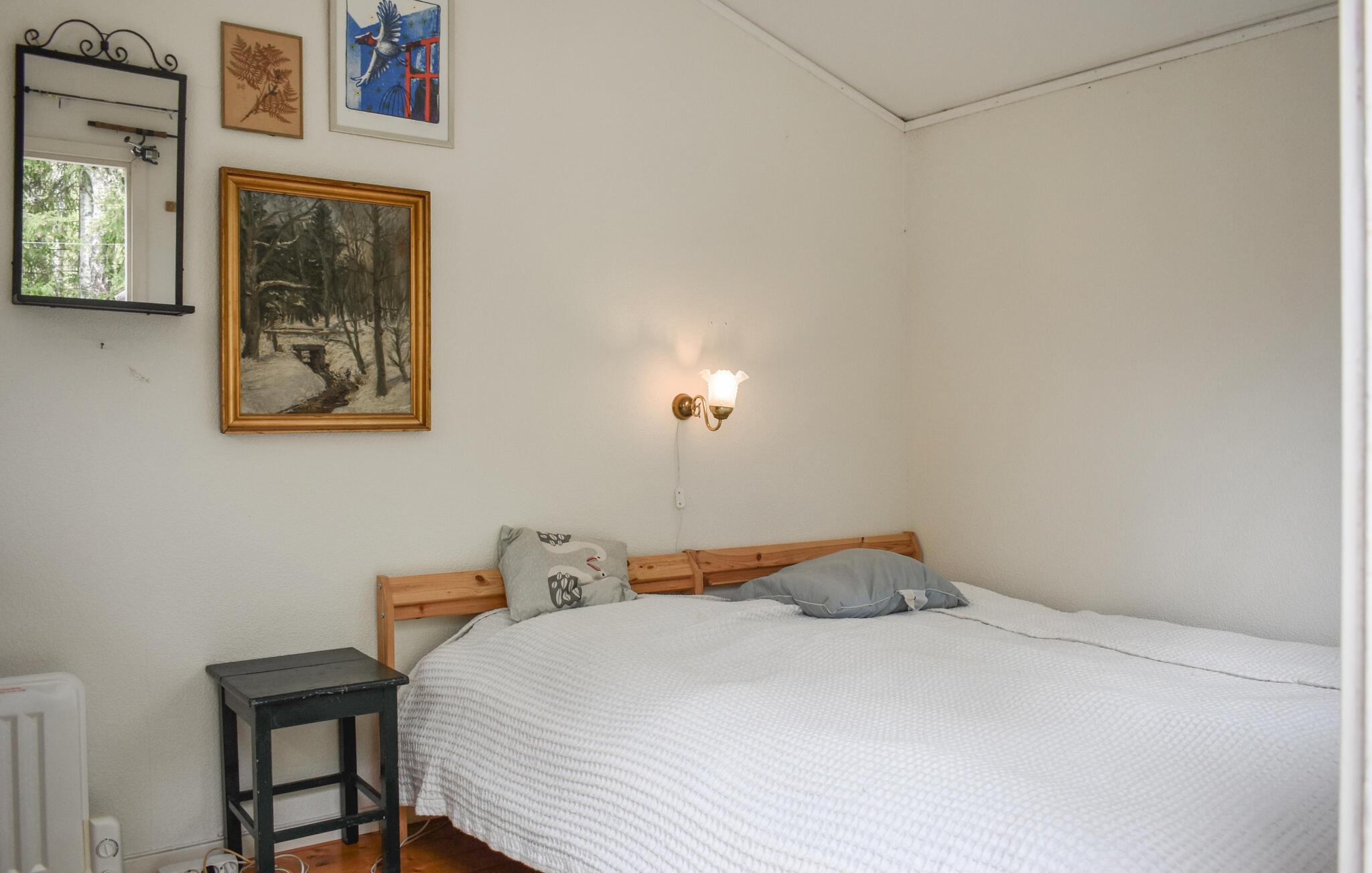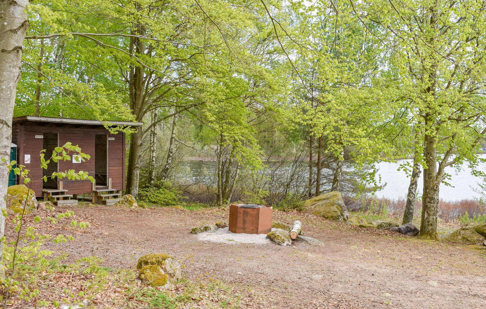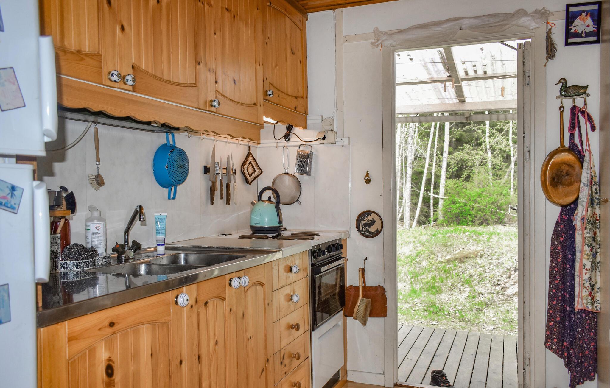 Omgiven av vacker natur kan ni se fram emot er semester i detta mysiga hus som ligger på en öppen naturtomt bara några steg från sjön. Här kan ni njuta av tid tillsammans med god mat, timmar av kortspel och pratstunder till sent på kvällen. Det mysiga uterummet med sina stora glasytor inbjuder till att dröja sig kvar och titta på fåglarna och förenar livet i huset med naturen.