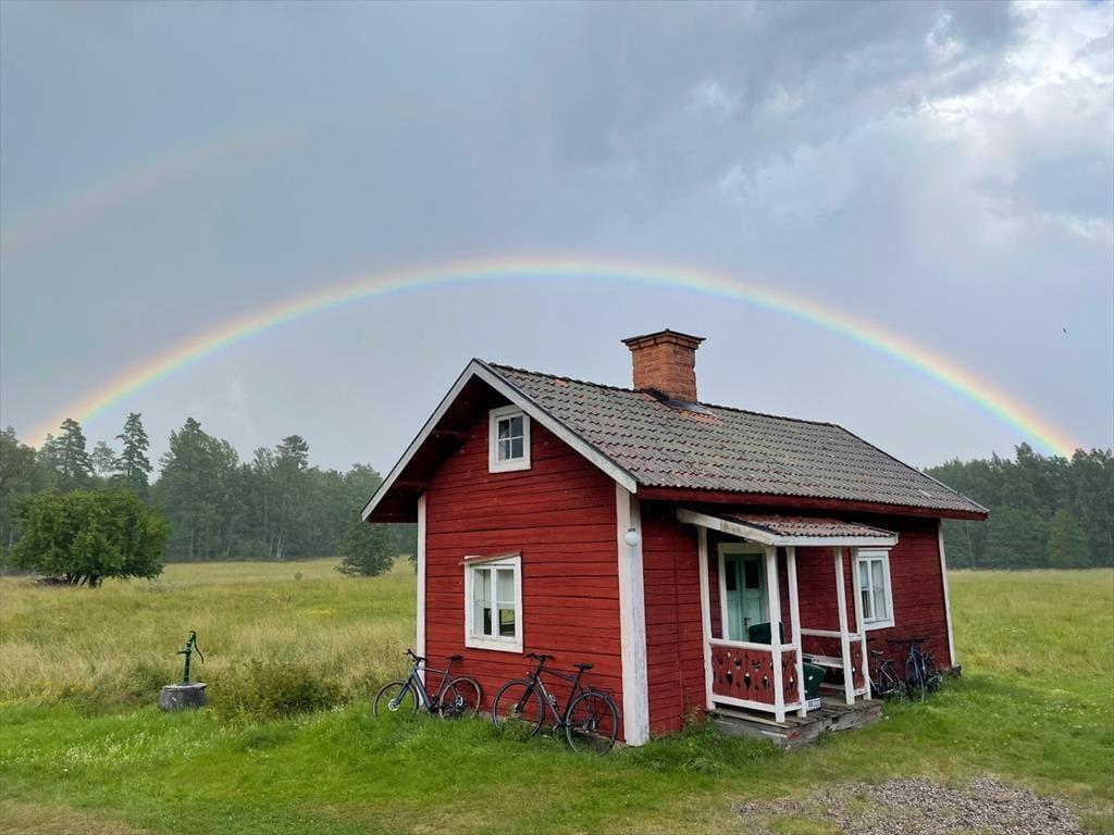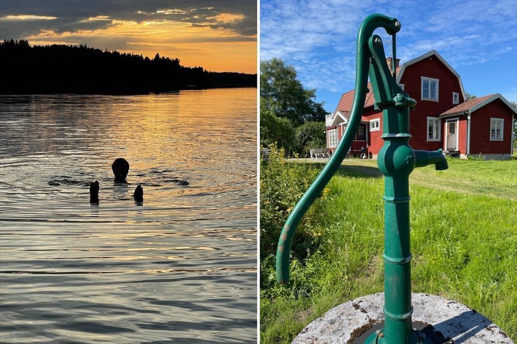 Draußen erwarten dich eine Veranda mit Gartenmöbeln, ein Grill, eine weite Spiel- und Liegewiese und natürlich das eigene Ruderboot samt Kanu. Wer mag, kann auf Anfrage auch einen Elektromotor nutzen. Direkt am Wasser steht zudem ein holzbeheiztes Saunahaus – für echte Schwedenmomente.