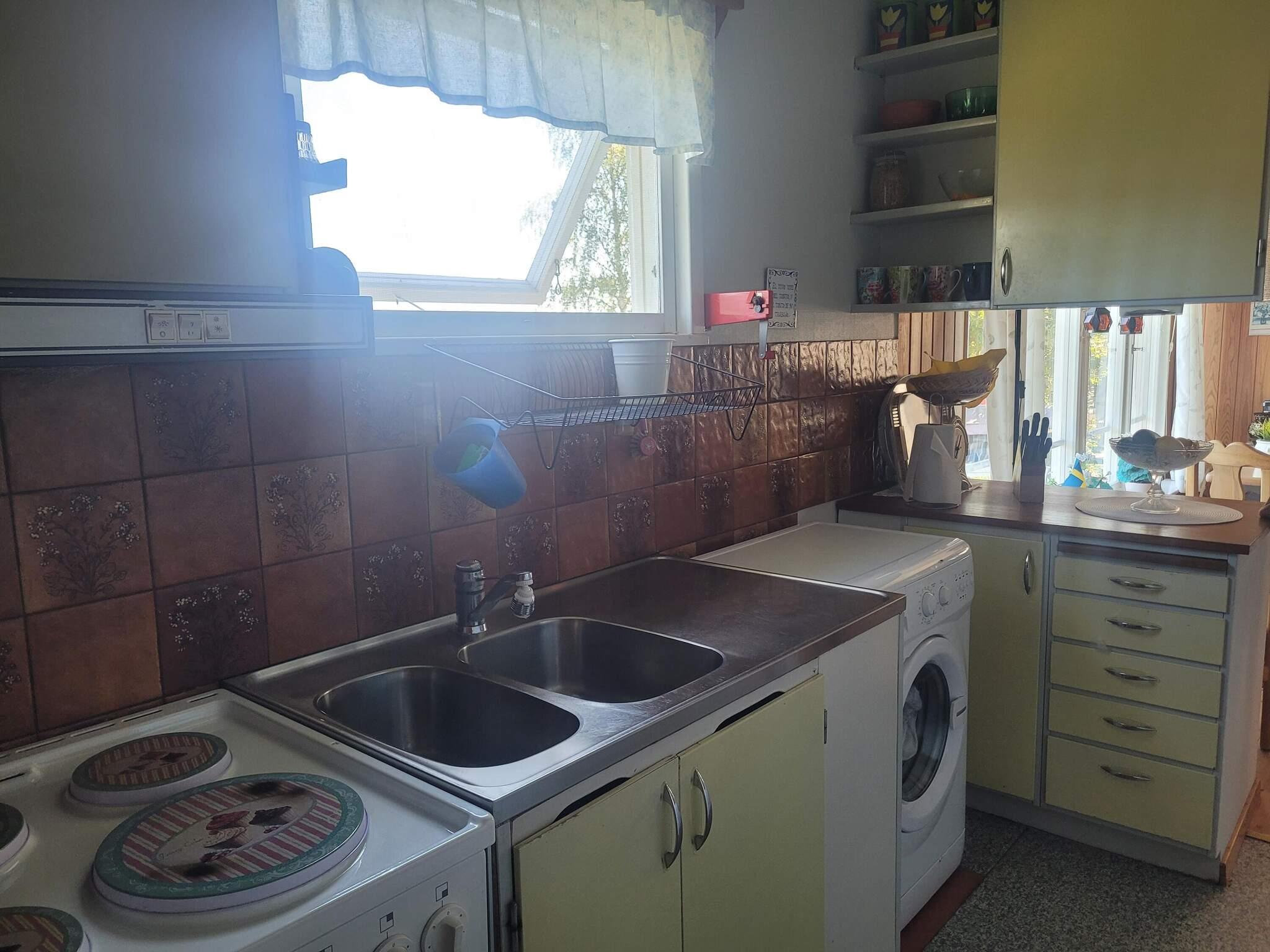 Det hemtrevliga huset byggdes 1969 och renoverades 2000, vilket ger en skön kombination av klassisk svensk sommarstugestil och moderna bekvämligheter. Här finns ett välutrustat kök, ett ljust vardagsrum med vedspis, samt ett badrum med tvättmaskin – allt du behöver för en smidig och avslappnad vistelse.