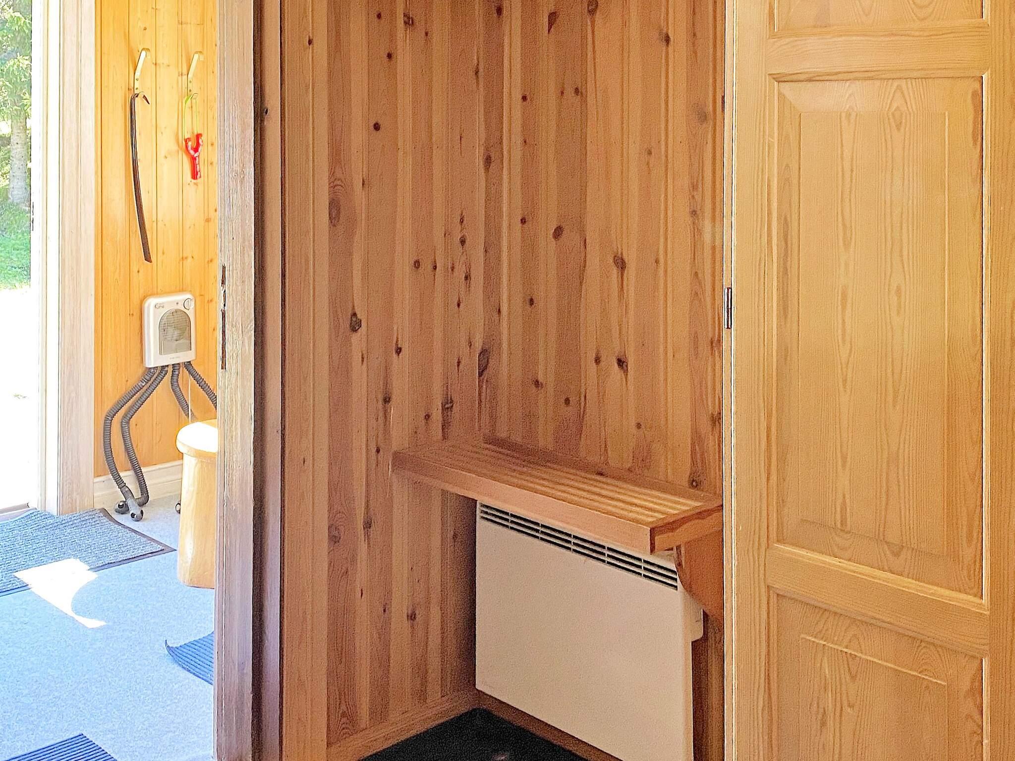 Stugan som har två plan har på nedervåningen en välkomnande yttre hall med torkskåp för blöta badkläder efter dagens äventyr och en inre hall som leder vidare till kök, badrum samt trappan till övervåningen.