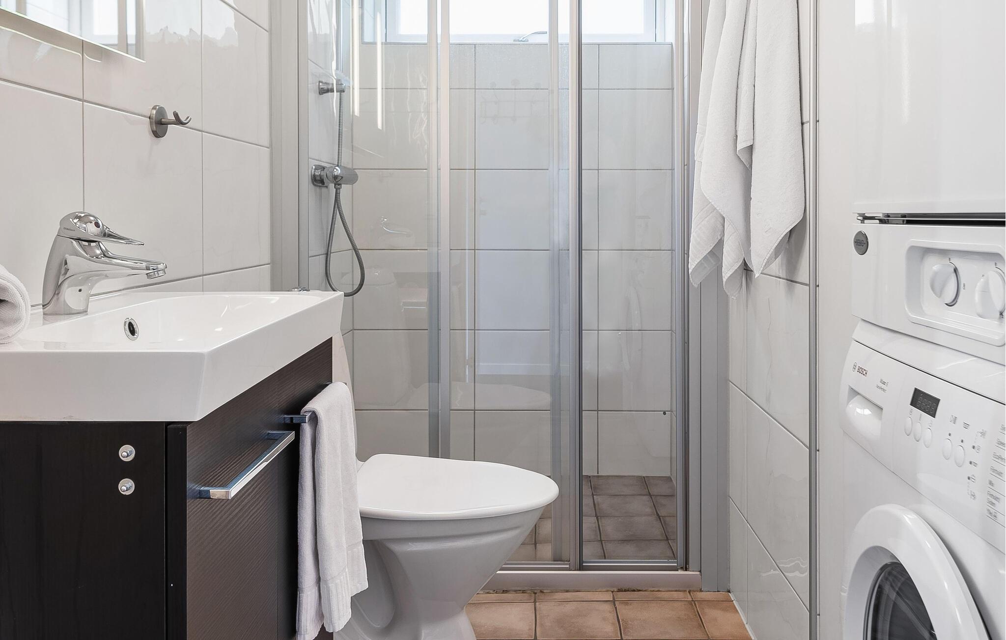 Badrum (nr. 1) - WC: Varmt och kallt vatten. Dusch
