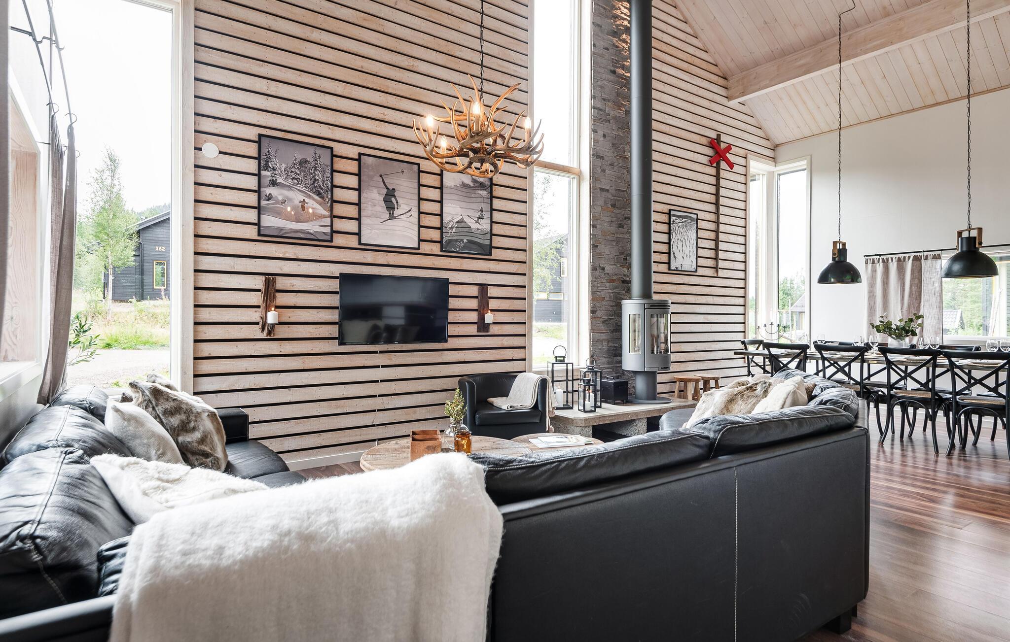 Se fram emot en bekväm semester med vänner eller familj i detta arkitektoniskt charmiga och smakfullt inredda hus mitt i ett pittoreskt landskap som inbjuder till utomhusaktiviteter året runt. Lyssna till sprakandet från den öppna spisen medan ni avnjuter trevliga måltider vid det mysigt upplysta matbordet eller samlas för ett glas vin i den rymliga soffgruppen. Efter en lång dag utomhus kan du unna dig några lugnande stunder i bastun eller streama en bra film.