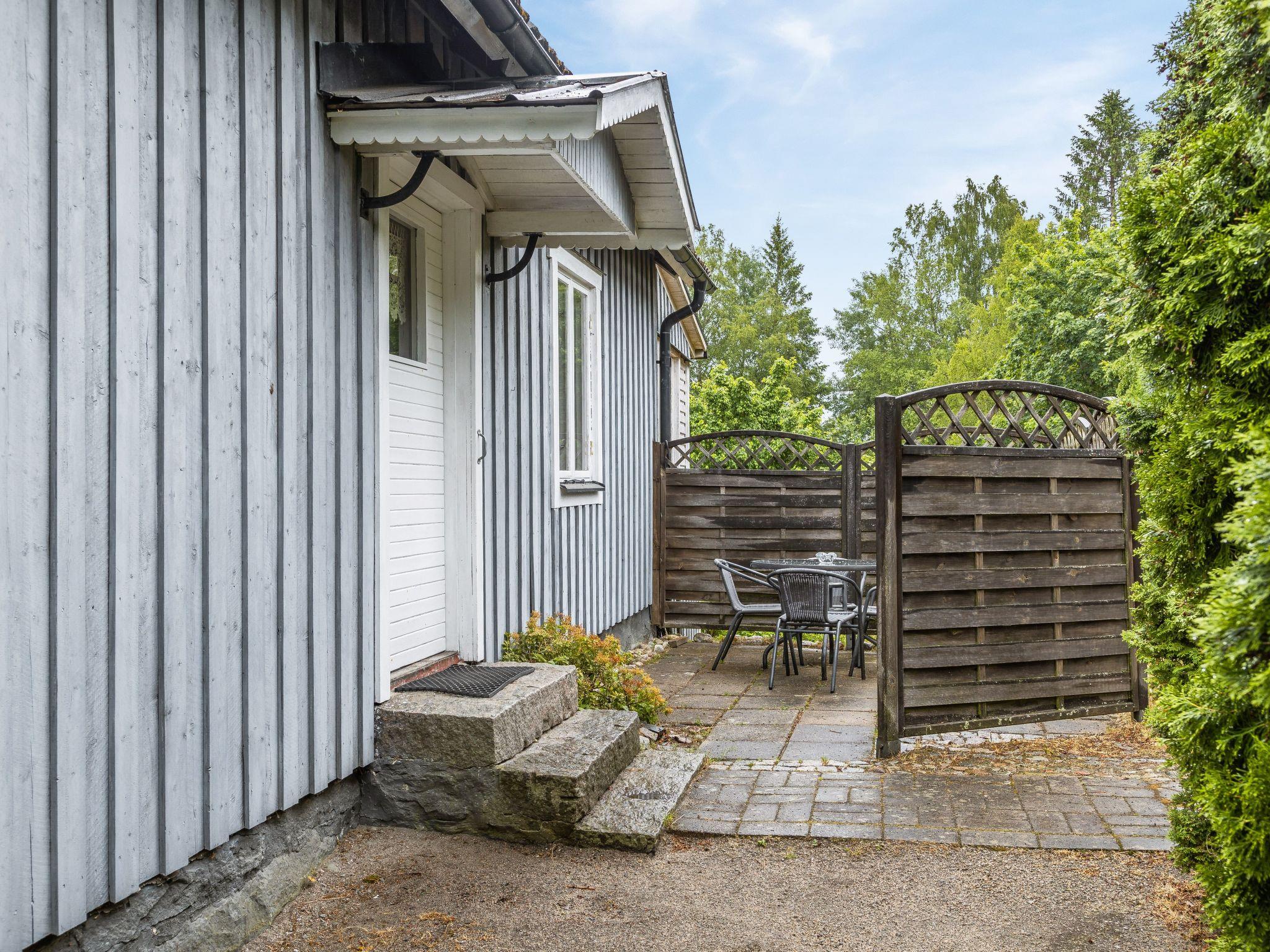 "Forneboda", 2-room house 78 m2. Practical furnishings: living/sleeping room with winter garden with 1 double sofabed (140 cm), satellite TV and CD-player. 1 open room with 1 double bed and Scandinavian wood stove (only for decoration). Kitchen (oven, 4 ceramic glass hob hotplates, toaster, kettle, microwave, freezer, electric coffee machine) with Scandinavian wood stove (only for decoration), dining table. Shower/WC. Electric heating. Wooden floors. Terrace. Terrace furniture, barbecue (portable). View of the lake. Facilities: iron, children's high chair, baby cot. Please note: non-smoking house. Smoke alarm, fire extinguisher. Freezer approx. 120 l. 1:59 M.FL
