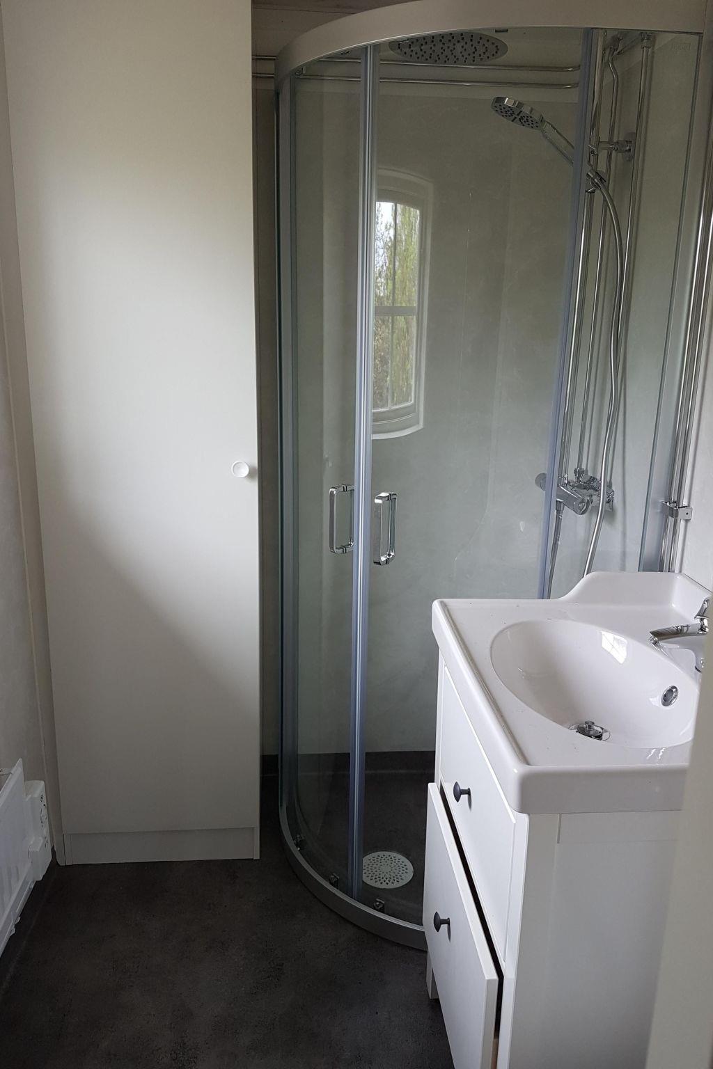 Step inside to find a cozily appointed living area, complete with a well-equipped kitchen meant to cater to all your culinary needs during your stay. The cottage features a restful bedroom offering two spring beds, ensuring a comfortable night's sleep. The craftsmanship extends to a convenient bathroom, equipped with a toilet and shower, all designed to enhance your comfort and convenience. Furnished with attention to detail, the interior of Sjötorpet promises a homely and delightful stay, making it the perfect setting for a memorable getaway.