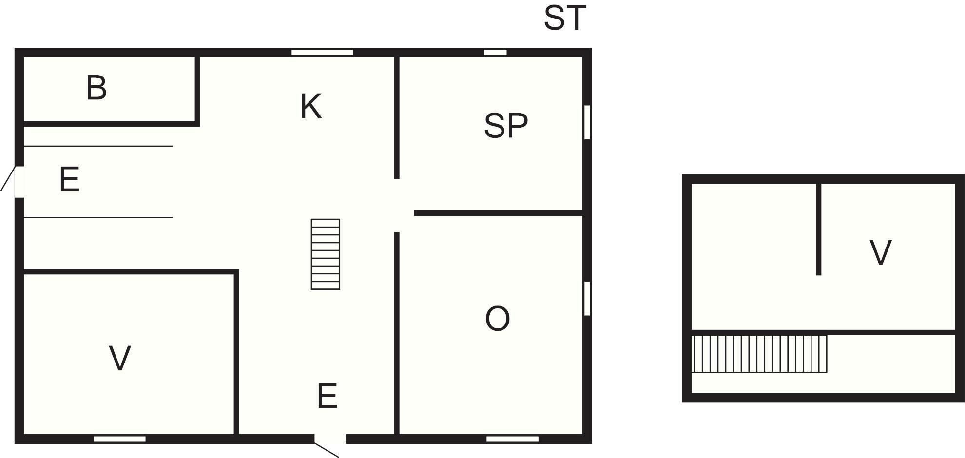 Här finns också ett mysigt sovrum med en 120 cm bred säng och en tv, samt två rejäla vardagsrum. Det ena vardagsrummet är möblerat med ett matsalsbord för gemensamma måltider, medan det andra erbjuder en bekväm soffgrupp där du kan koppla av och njuta av lugnet. Ett badrum med dusch och toalett finns också på detta plan. På övervåningen finns ytterligare ett sovrum, inrett med en dubbelsäng 180cm.