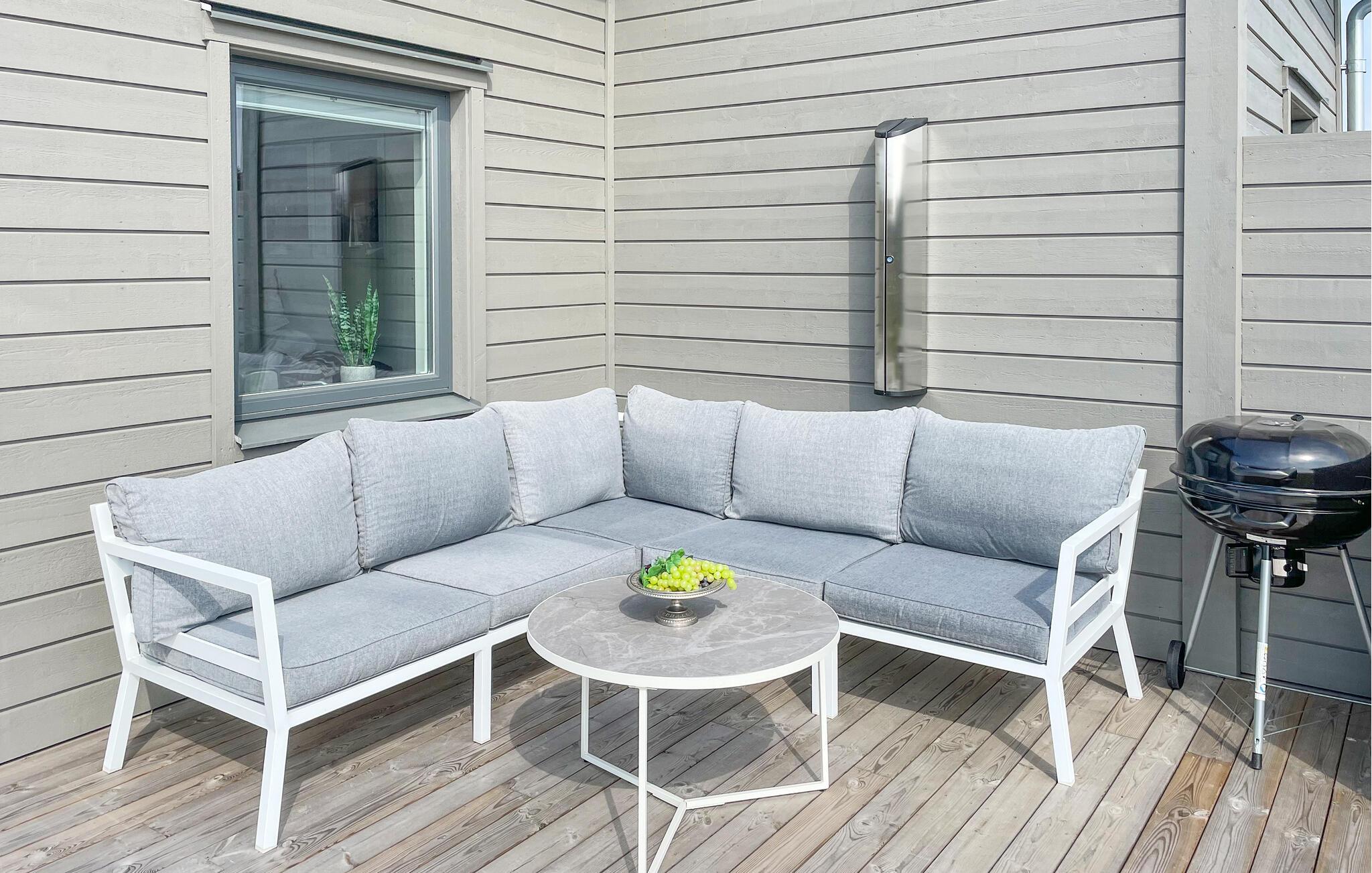 Tillbringa mysiga timmar ute på de två terrasserna eller det inglasade orangeriet och njut av solskenet. Gå några steg till havet och hoppa från den långa badbryggan ner i det underbart uppfriskande vattnet. En vandringsled väntar på dig precis utanför dörren. Om du känner för det kan du också spela discgolf i närheten eller besöka några av grillplatserna med utsikt i det omgivande området.