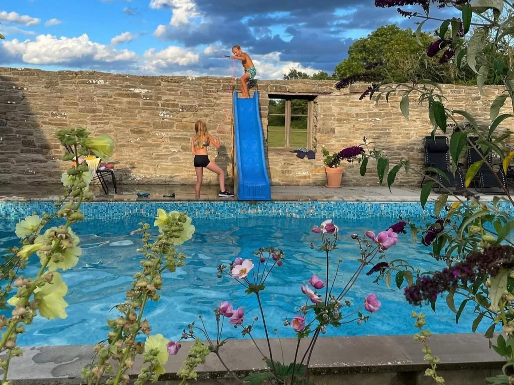 Saltvattenpoolen med barnrutschkana kompletterar denna avslappnade och familjevänliga semesteranläggning på Öland.