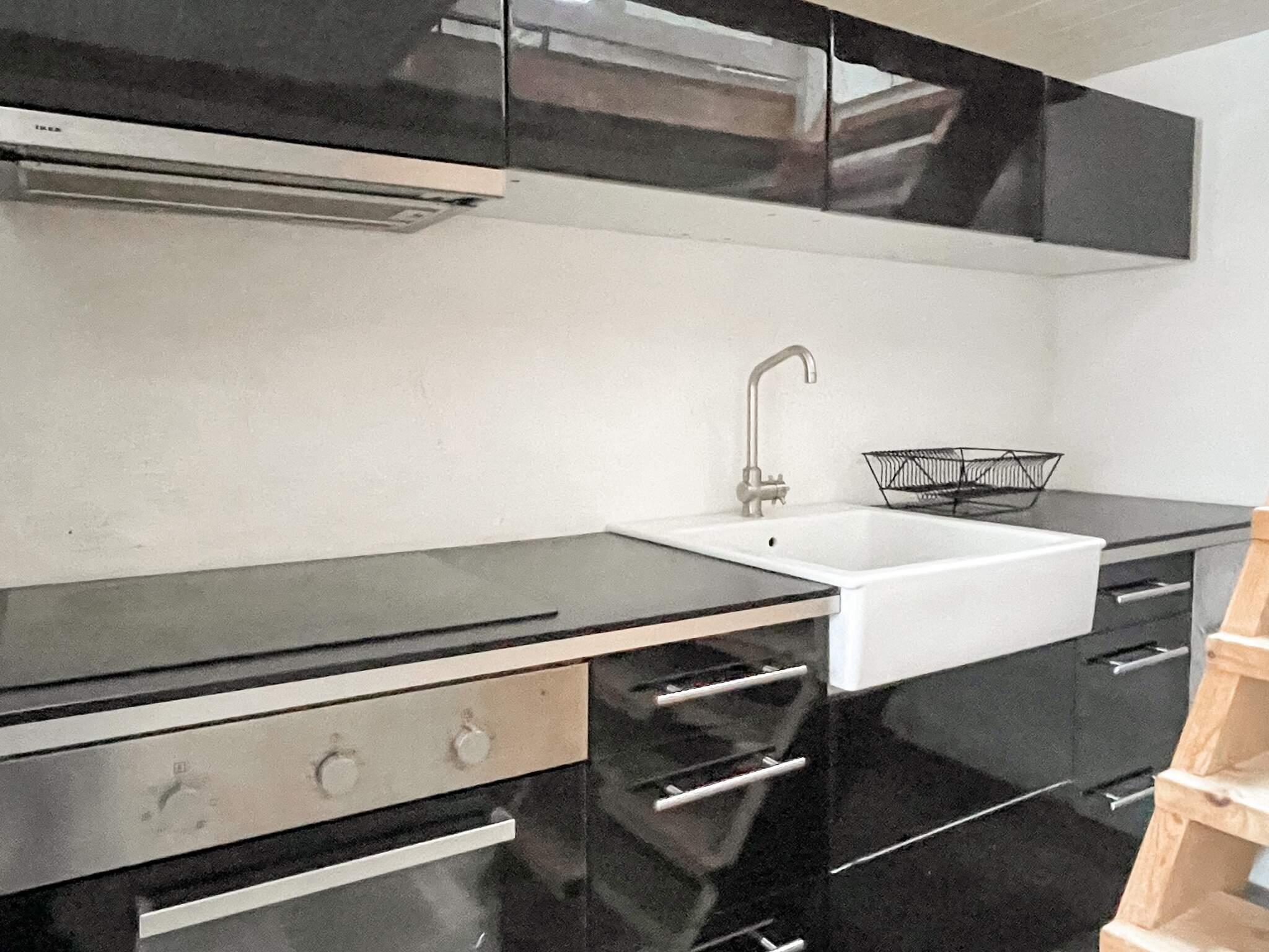Etagelägenheten har ett modernt kök, matplats och badrum på nedre plan, medan det öppna övre plan har glaspartier och balkong ut mot Allvaret. Här finns synliga takbjälkar, en dubbelsäng och en vardagsrumsdel med bäddsoffa. Poolens barnrutschkana gör den särskilt välkomnande för familjer.