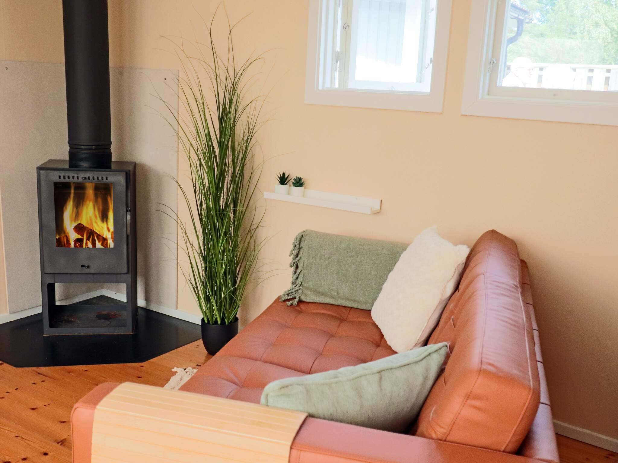 I stugan finns kök med matplats. Badrummet har dusch. Vardagsrummet har en bekväm soffa, modern TV med chromecast samt en braskamin. Härifrån är det utgång till ett behagligt inglasat uterum med ett stort matbord. Det finns ett sovrum med en dubbelsäng och ett med en bäddsoffa för två personer. Den stora terrassen är insyns- och vindskyddad, där njuter ni i bekväma loungemöbler, solstolar och matbord.