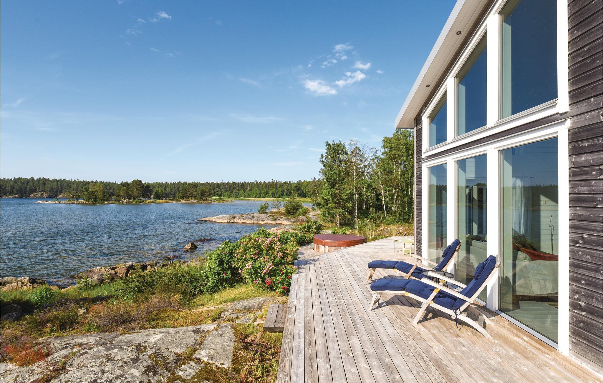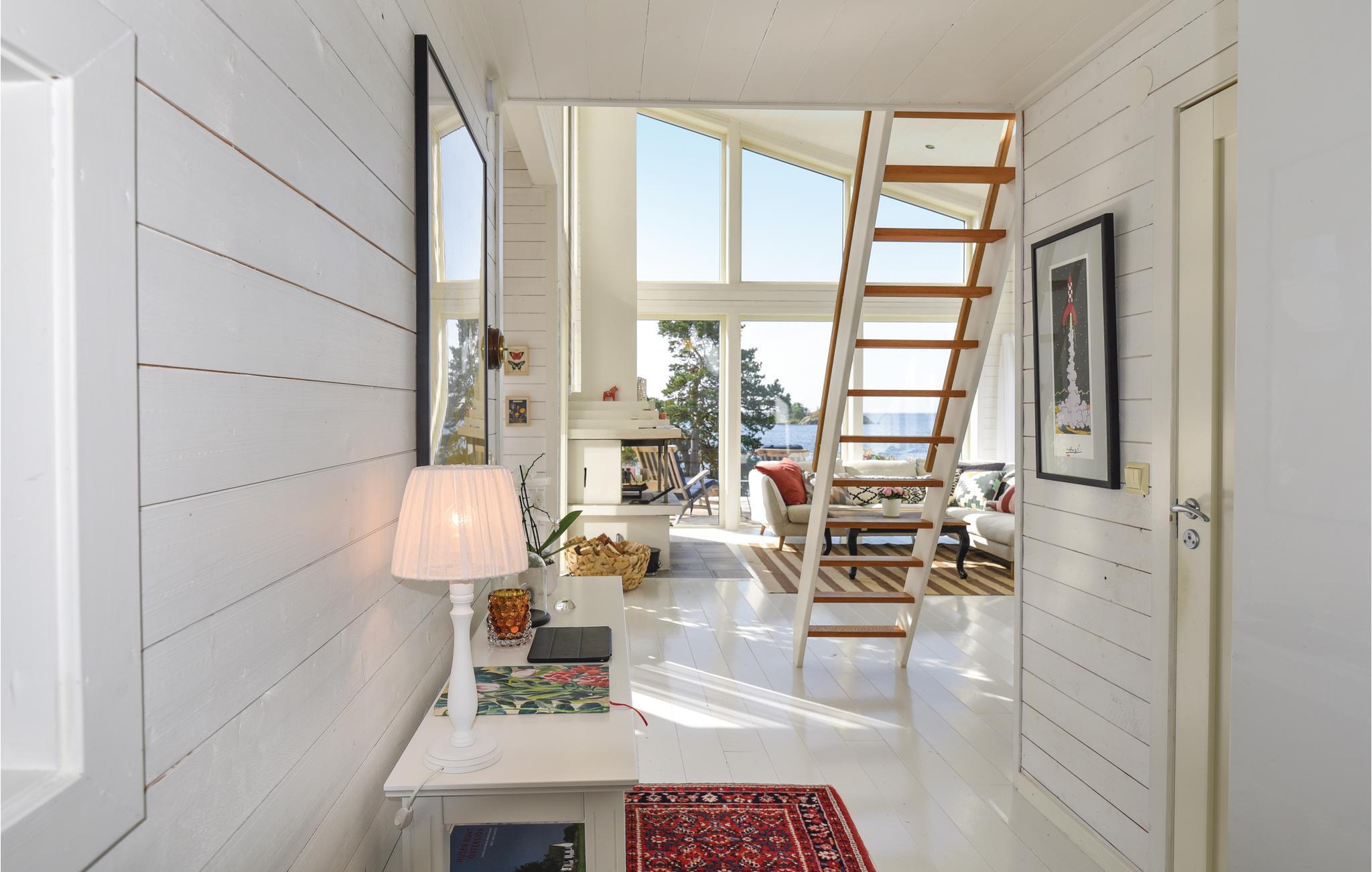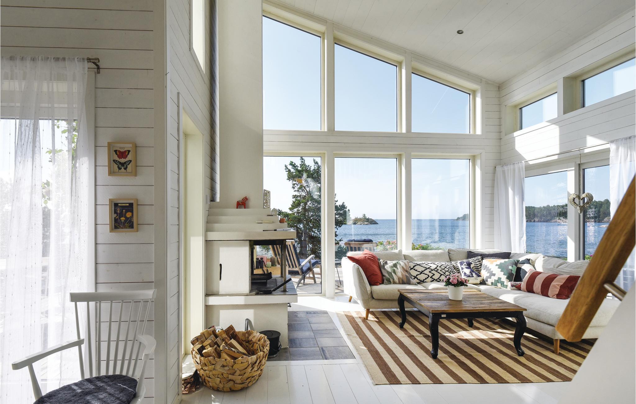 Ett semesterparadis för den kräsne. Den här arkitektritade villan ligger på spetsen av en udde i Vänern nära Mellerud och vid sjöns västra strand.